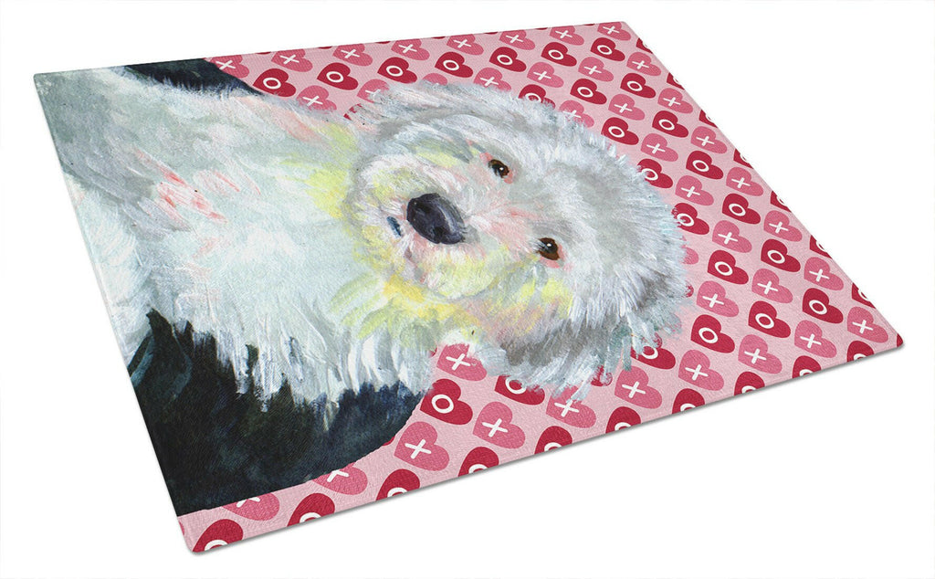 Decorate your space with our Valentine's Day Old English Sheepdog artwork on a Cutting Board. Introduce your kitchen to the vibrant, large Decorative Glass Cutting Board from Caroline's Treasures. Crafted from resilient tempered glass, this board is not only a utilitarian necessity but also a colorful art piece. With its generous dimensions of 15 inches in height and 12 inches in length, it offers ample space for all your cutting needs. Every piece showcases captivating artwork from distinguished artists, bringing an aesthetic edge to your kitchen. Beyond its attractive design, this cutting board ensures your countertop stays pristine and unscathed, owing to its heat-resistant properties. Engineered with user convenience in mind, it features non-skid feet for stability, and rounded corners for additional safety. Its robust construction renders it virtually unbreakable, guaranteeing longevity. The board comes with protective feet bumpers, maintaining its position during use. This product is recommended to be hand washed only. Proudly printed and assembled in the United States, this cutting board exemplifies superior craftsmanship. With Caroline's Treasures' Decorative Glass Cutting Board, you're investing in a blend of functionality and artistic flair.
