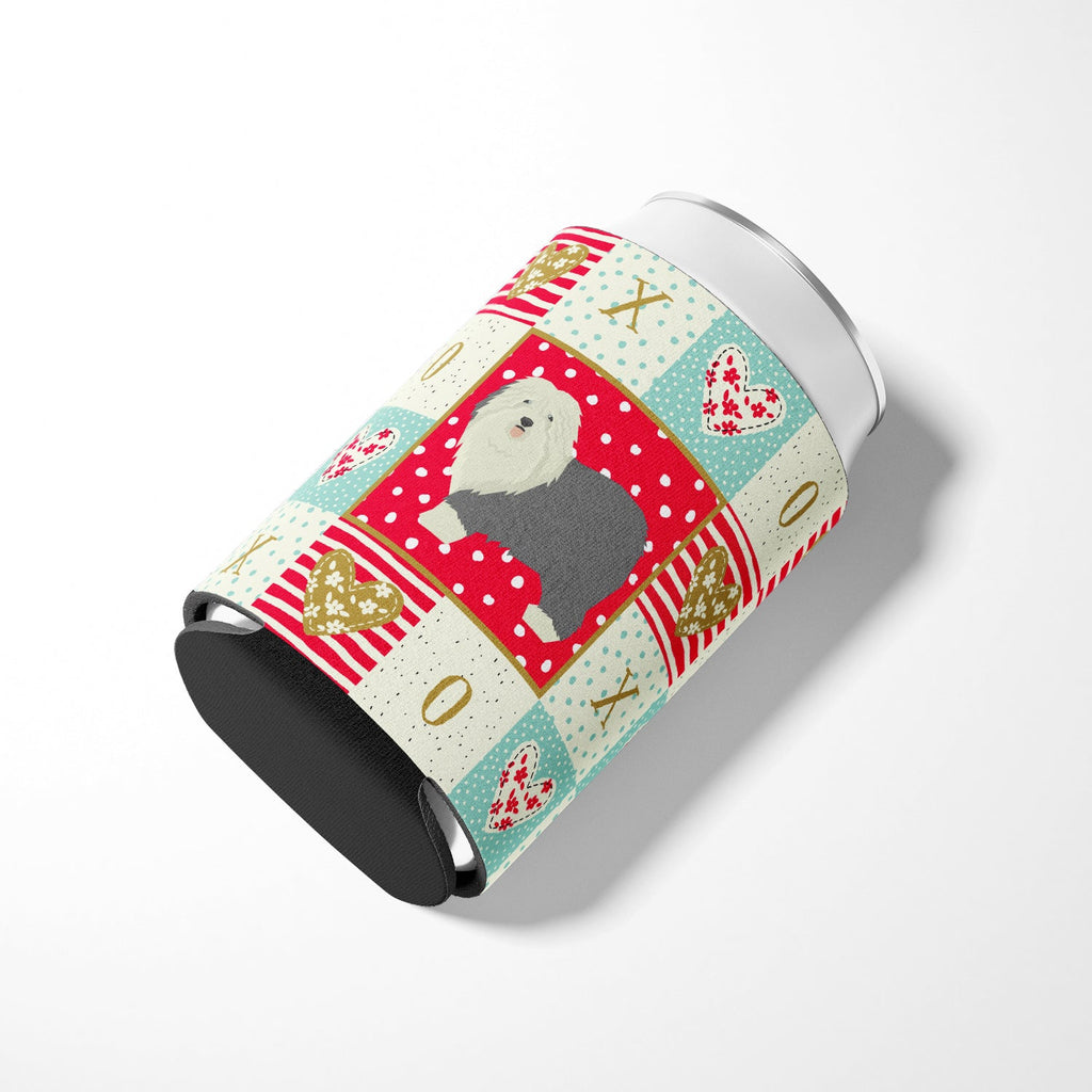 Decorate your space with our Valentine's Day Old English Sheepdog artwork on a Hugger. Introducing our Can or Bottle Hugger, a must-have accessory for your beverage enjoyment. Designed to perfectly fit any standard 12-ounce can, this can cooler is the ideal companion to keep your soda, beer, or any drink of your choice at the perfect temperature. Our can hugger is not just functional, it's a work of art. Featuring full-color artwork that's permanently dyed into the foam, this hugger promises a design that's fade-resistant and made to last, making your beverage stand out in style. The design isn't silk-screened, which ensures the vibrancy of the colors, offering you a long-lasting, appealing aesthetic. What sets our can hugger apart is its high-quality foam fabric, which is not only durable but also machine washable for easy maintenance. Whether you call it a huggie, can coolie, can cozie, or beer holder, this drink sleeve brings style and function together. Proudly designed, printed, and sewn in the USA, our Can or Bottle Hugger is an ideal addition to your beverage experience. Match it with one of our insulated coolers for a complete gift set, adding flair and convenience to your drink enjoyment.