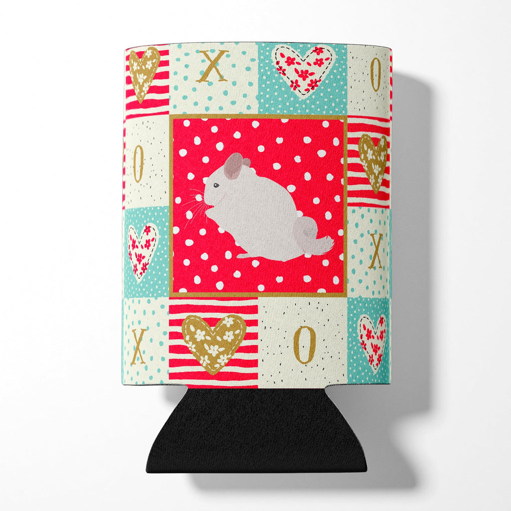 Decorate your space with our Valentine's Day Pink and White Chinchilla artwork on a Hugger. Introducing our Can or Bottle Hugger, a must-have accessory for your beverage enjoyment. Designed to perfectly fit any standard 12-ounce can, this can cooler is the ideal companion to keep your soda, beer, or any drink of your choice at the perfect temperature. Our can hugger is not just functional, it's a work of art. Featuring full-color artwork that's permanently dyed into the foam, this hugger promises a design that's fade-resistant and made to last, making your beverage stand out in style. The design isn't silk-screened, which ensures the vibrancy of the colors, offering you a long-lasting, appealing aesthetic. What sets our can hugger apart is its high-quality foam fabric, which is not only durable but also machine washable for easy maintenance. Whether you call it a huggie, can coolie, can cozie, or beer holder, this drink sleeve brings style and function together. Proudly designed, printed, and sewn in the USA, our Can or Bottle Hugger is an ideal addition to your beverage experience. Match it with one of our insulated coolers for a complete gift set, adding flair and convenience to your drink enjoyment.