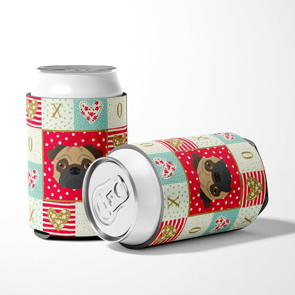 Decorate your space with our Valentine's Day Pug artwork on a Hugger. Introducing our Can or Bottle Hugger, a must-have accessory for your beverage enjoyment. Designed to perfectly fit any standard 12-ounce can, this can cooler is the ideal companion to keep your soda, beer, or any drink of your choice at the perfect temperature. Our can hugger is not just functional, it's a work of art. Featuring full-color artwork that's permanently dyed into the foam, this hugger promises a design that's fade-resistant and made to last, making your beverage stand out in style. The design isn't silk-screened, which ensures the vibrancy of the colors, offering you a long-lasting, appealing aesthetic. What sets our can hugger apart is its high-quality foam fabric, which is not only durable but also machine washable for easy maintenance. Whether you call it a huggie, can coolie, can cozie, or beer holder, this drink sleeve brings style and function together. Proudly designed, printed, and sewn in the USA, our Can or Bottle Hugger is an ideal addition to your beverage experience. Match it with one of our insulated coolers for a complete gift set, adding flair and convenience to your drink enjoyment.