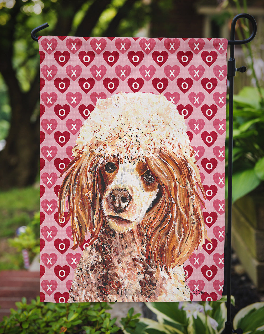 Decorate your space with our Valentine's Day Poodle artwork on a Garden Flag. Enhance the beauty of your garden, patio, or yard with Caroline's Treasures Decorative Garden Flag, proudly made in the USA. Crafted from two pieces of thick, double-sided polyester fabric, this 2-ply garden flag is designed to withstand various weather conditions, making it water-resistant and weatherproof. Featuring correctly readable words on both sides, this garden flag offers a delightful visual experience from any angle. With its heavier weight, it stands out among other garden flags, ensuring stability and durability even in wind, rain, and snow. Measuring approximately 11 1/4 inches by 15 1/2 inches, this flag allows you to personalize your outdoor decor. It comes with a 1 1/2-inch sleeve sewn in, allowing easy attachment to any standard garden flag stand or garden size porch hanger (sold separately). Make a statement in your outdoor space with Caroline's Treasures Decorative Garden Flag, a vibrant and high-quality flag that adds color and personality to your surroundings. Proudly made in the USA, it's a symbol of quality craftsmanship and attention to detail.