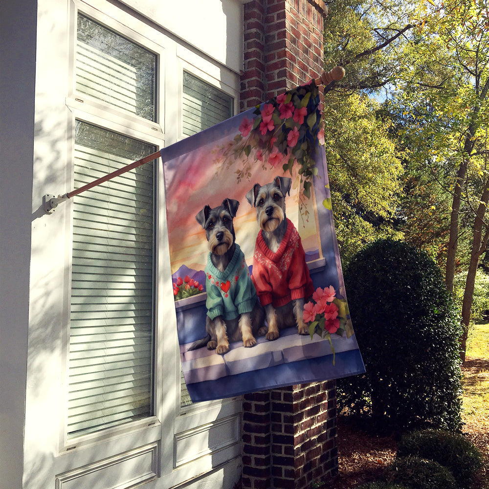 Decorate your space with our Valentine's Day Schnauzer artwork on a Large Flag. Presenting our Heavy Duty Polyester House Size Decorative Sleeve Pole Flag, a vibrant addition to enhance the aesthetic appeal of your home. This large decorative flag, measuring approximately 28 x 40 inches, offers ample coverage and visibility. Each flag is meticulously sewn and made individually, ensuring a unique piece that may slightly vary in size. It's a sleeve pole flag, designed to fit a standard decorative flag pole effortlessly. Please note that the flag pole and bracket are not included and should be purchased separately. What sets our flag apart is its dual-sided print. The design is mirrored on both sides of the fabric, allowing for uniform visibility regardless of the angle. Printed in full color, our flag showcases vibrant hues that truly stand out. To ensure lasting vibrancy and durability, the dyes are heat-set into the fabric. This ensures your flag remains bright and captivating through various weather conditions. Elevate the look of your home with our Heavy Duty Polyester House Size Decorative Sleeve Pole Flag!