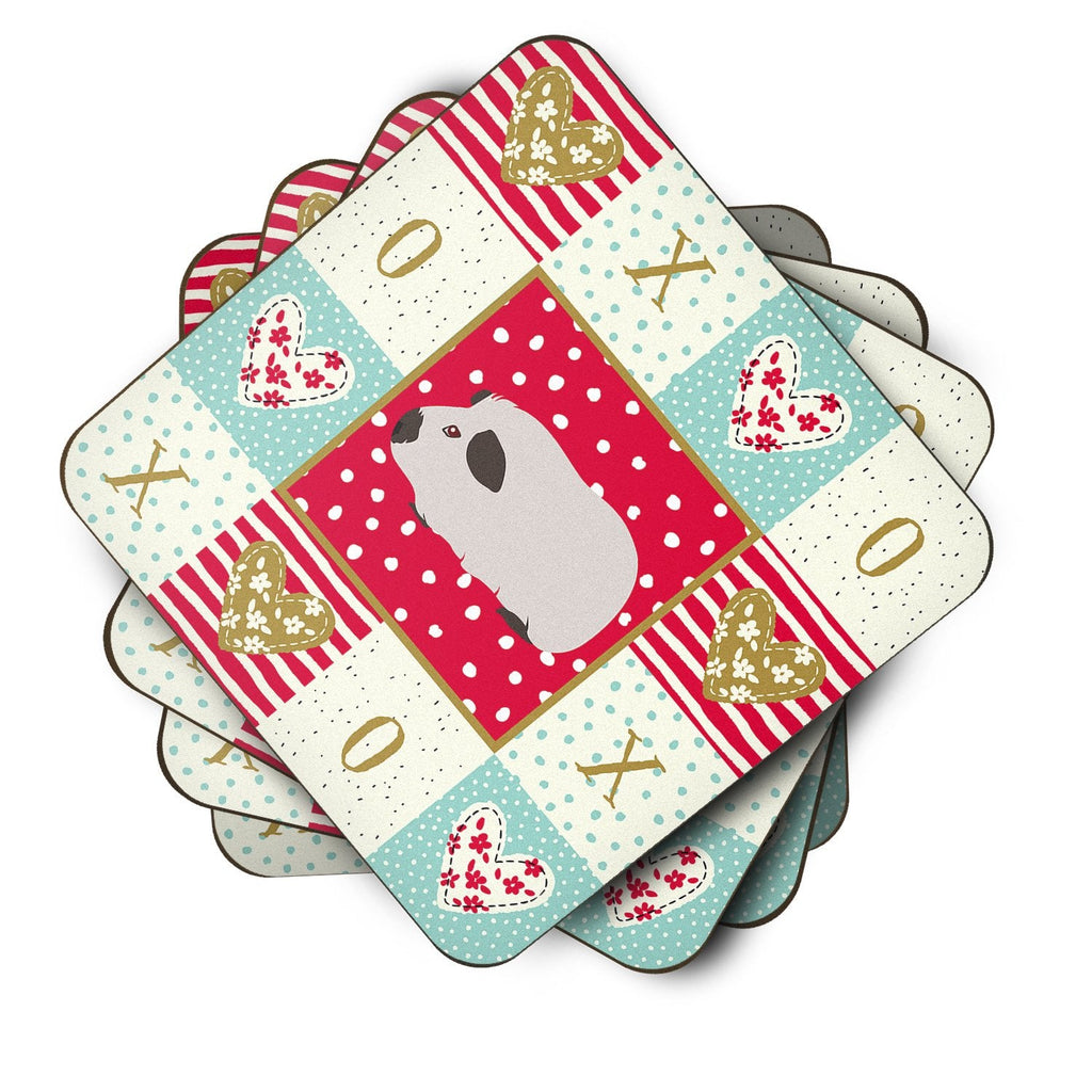 Decorate your space with our Valentine's Day Himalayan Guinea Pig artwork on a Coaster set. Presenting our Set of 4 Foam Coasters, a stylish and practical addition to your table setting. Each square coaster, measuring 3 1/2 inches by 3 1/2 inches, is perfectly sized to accommodate various drinkware, from coffee mugs to tumblers. These coasters stand out with their full-color artwork, permanently dyed onto the material for a vibrant and fade-resistant finish. They're not just functional, they're a fashionable statement, adding a touch of flair to any gathering or event. Our foam coasters serve a dual purpose - they protect your table from water stains and are perfect for both hot and cold drinks. The material used is similar to that of our high-quality mouse pads, ensuring durability and heat resistance. These coasters are easy to maintain - simply wash them in the top of your dishwasher and lay flat to dry. The design won't come off, ensuring they retain their vivid colors for years. Pair them with one of our insulated coolers or huggers for a cohesive, thoughtful gift set. Enhance your beverage experience with our Set of 4 Foam Coasters.