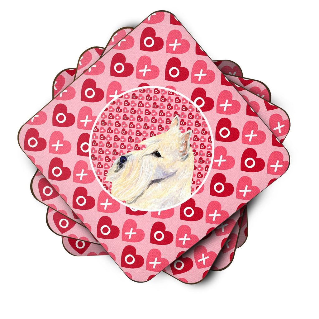 Decorate your space with our Valentine's Day Scottish Terrier artwork on a Coaster set. Presenting our Set of 4 Foam Coasters, a stylish and practical addition to your table setting. Each square coaster, measuring 3 1/2 inches by 3 1/2 inches, is perfectly sized to accommodate various drinkware, from coffee mugs to tumblers. These coasters stand out with their full-color artwork, permanently dyed onto the material for a vibrant and fade-resistant finish. They're not just functional, they're a fashionable statement, adding a touch of flair to any gathering or event. Our foam coasters serve a dual purpose - they protect your table from water stains and are perfect for both hot and cold drinks. The material used is similar to that of our high-quality mouse pads, ensuring durability and heat resistance. These coasters are easy to maintain - simply wash them in the top of your dishwasher and lay flat to dry. The design won't come off, ensuring they retain their vivid colors for years. Pair them with one of our insulated coolers or huggers for a cohesive, thoughtful gift set. Enhance your beverage experience with our Set of 4 Foam Coasters.