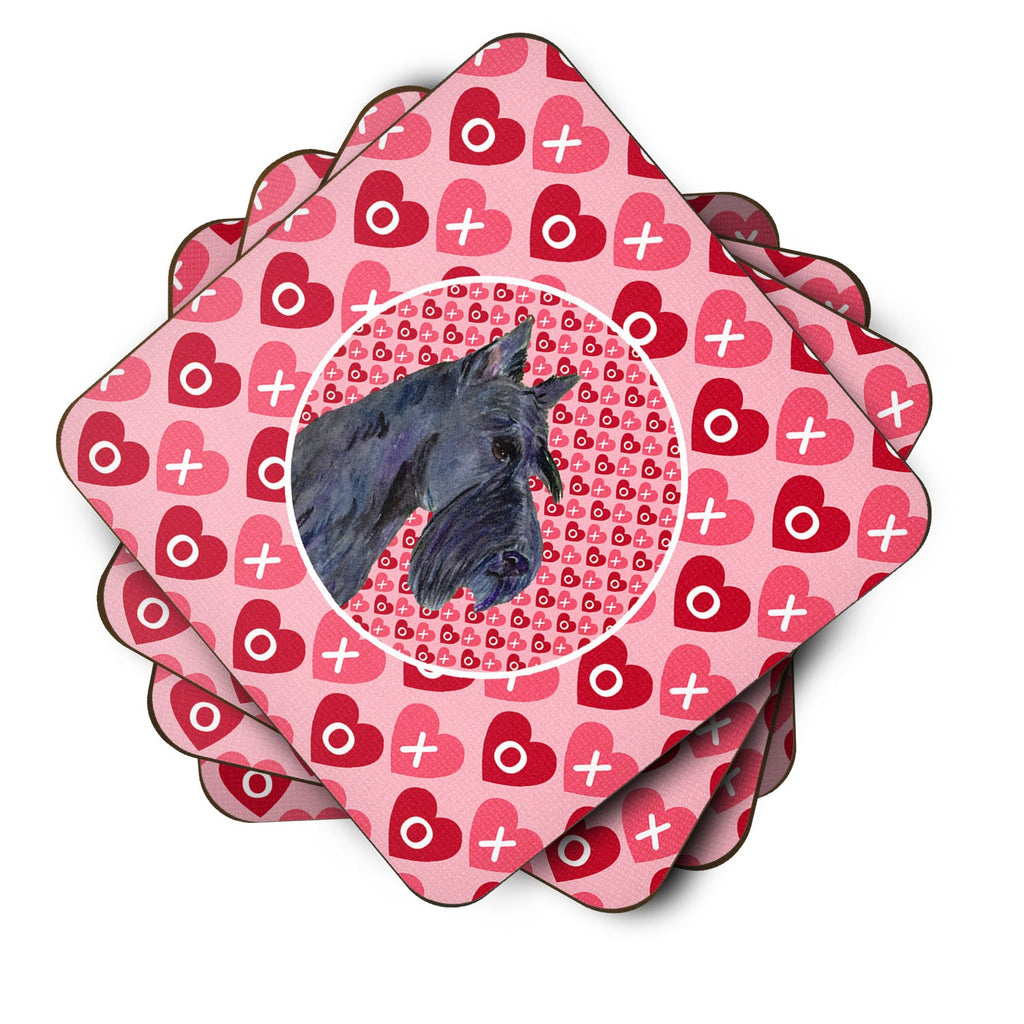 Decorate your space with our Valentine's Day Scottish Terrier artwork on a Coaster set. Presenting our Set of 4 Foam Coasters, a stylish and practical addition to your table setting. Each square coaster, measuring 3 1/2 inches by 3 1/2 inches, is perfectly sized to accommodate various drinkware, from coffee mugs to tumblers. These coasters stand out with their full-color artwork, permanently dyed onto the material for a vibrant and fade-resistant finish. They're not just functional, they're a fashionable statement, adding a touch of flair to any gathering or event. Our foam coasters serve a dual purpose - they protect your table from water stains and are perfect for both hot and cold drinks. The material used is similar to that of our high-quality mouse pads, ensuring durability and heat resistance. These coasters are easy to maintain - simply wash them in the top of your dishwasher and lay flat to dry. The design won't come off, ensuring they retain their vivid colors for years. Pair them with one of our insulated coolers or huggers for a cohesive, thoughtful gift set. Enhance your beverage experience with our Set of 4 Foam Coasters.