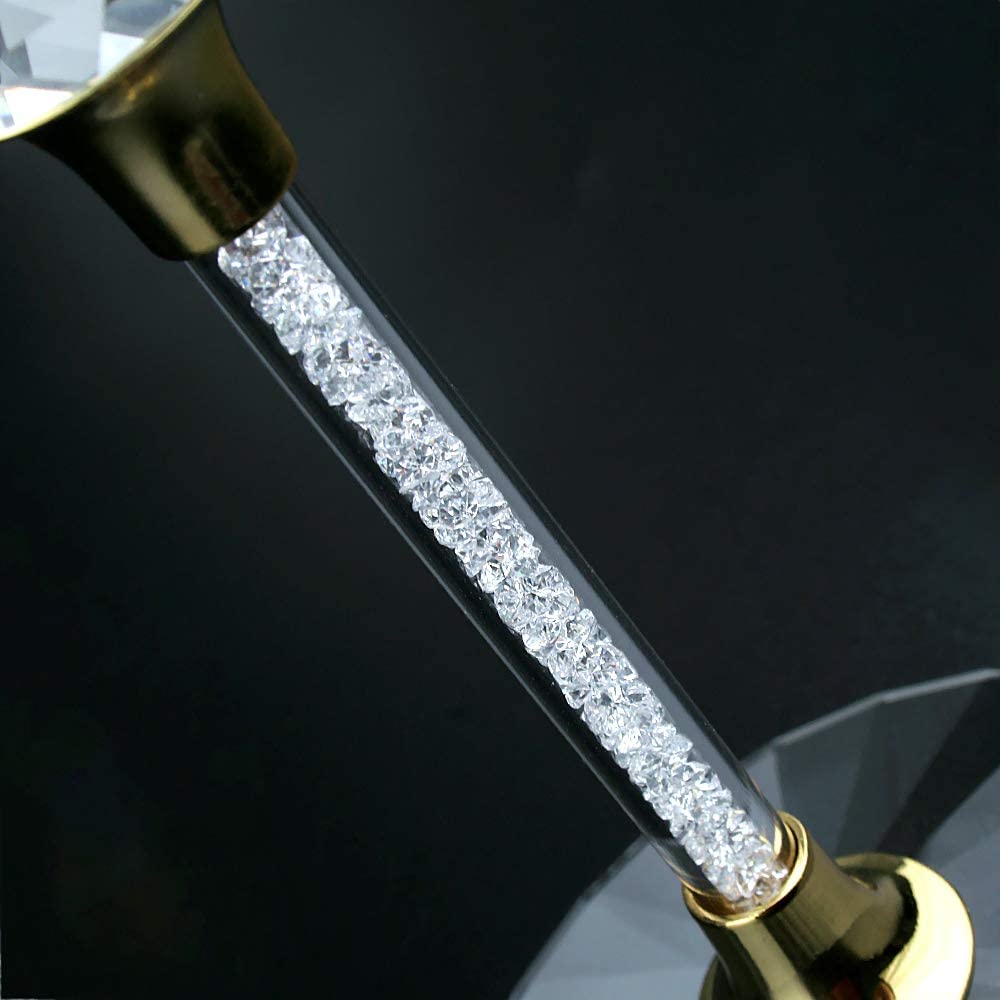 - These Crystal Ball Diamond Filled Wine Glasses from Wine Savant would be the perfect addition to any household, bar or restaurant. The stem gives class while the yellow gold gives a feeling of class and luxury. Perfect for dinner parties or just for a glass of wine to unwind. The enchanting wine glasses are great for any occasion; they add a complimenting shine to any beverage that has the pleasure of making its way into the glass.