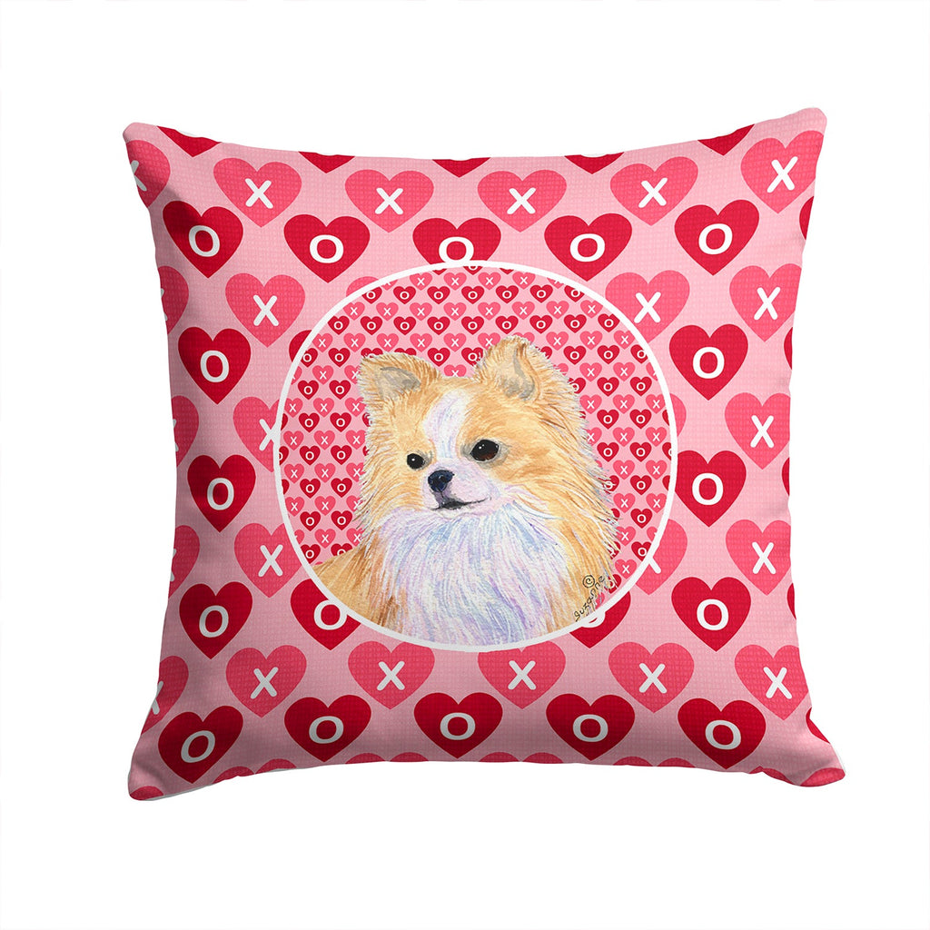 Decorate your space with our Valentine's Day Chihuahua artwork on a Pillow. Add a touch of vibrancy and comfort to your outdoor seating with Caroline's Treasures Fabric Decorative Pillow. Measuring approximately 14 inches by 14 inches, this outdoor pillow is crafted to elevate the appeal of your patio furniture, infusing it with vivid color and artistic flair. The pillow includes a 100% Polyester Fabric sham filled with a quality pillow form to provide superior comfort. Innovatively made from our brand new material, specifically woven for its water resistance, this pillow is designed for durability. The soft canvas fabric offers versatility in use, fit for your indoor couch or your outdoor patio, porch, or veranda. The fabric is dyed with colorfast dyes built for resilience against weather conditions, ensuring the pillow retains its beauty over time. Constructed by sewing three fabric pieces to create a sham, the polyester insert is then nestled inside to form the pillow, resulting in an overstuffed pillow that maintains its shape. Both the sham and the pillow insert are proudly made in the United States. As the pillows are handcrafted, there may be minor variations in size, further enhancing their unique charm. Experience comfort in style with Caroline's Treasures Fabric Decorative Pillow.
