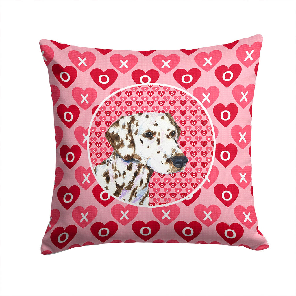Decorate your space with our Valentine's Day Dalmatian artwork on a Pillow. Add a touch of vibrancy and comfort to your outdoor seating with Caroline's Treasures Fabric Decorative Pillow. Measuring approximately 14 inches by 14 inches, this outdoor pillow is crafted to elevate the appeal of your patio furniture, infusing it with vivid color and artistic flair. The pillow includes a 100% Polyester Fabric sham filled with a quality pillow form to provide superior comfort. Innovatively made from our brand new material, specifically woven for its water resistance, this pillow is designed for durability. The soft canvas fabric offers versatility in use, fit for your indoor couch or your outdoor patio, porch, or veranda. The fabric is dyed with colorfast dyes built for resilience against weather conditions, ensuring the pillow retains its beauty over time. Constructed by sewing three fabric pieces to create a sham, the polyester insert is then nestled inside to form the pillow, resulting in an overstuffed pillow that maintains its shape. Both the sham and the pillow insert are proudly made in the United States. As the pillows are handcrafted, there may be minor variations in size, further enhancing their unique charm. Experience comfort in style with Caroline's Treasures Fabric Decorative Pillow.