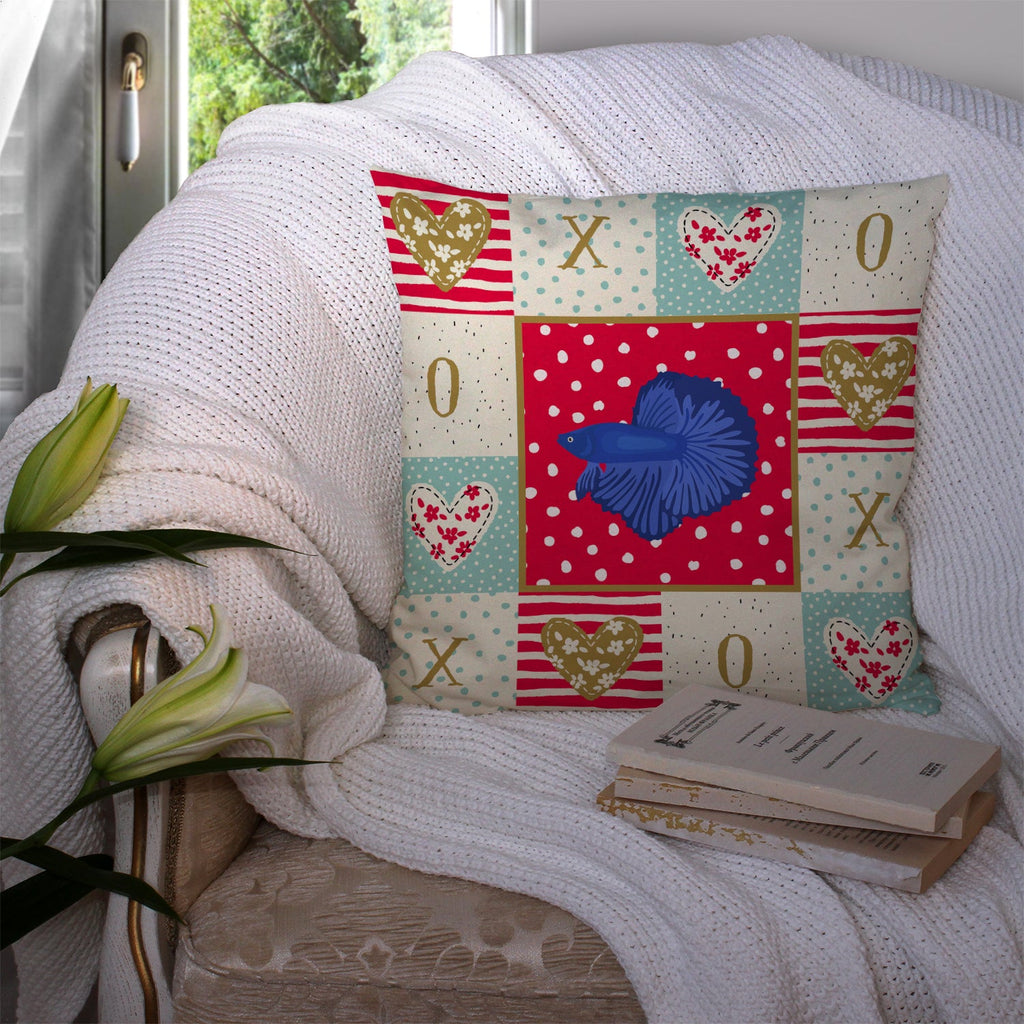 Decorate your space with our Valentine's Day artwork on a Pillow. Add a touch of vibrancy and comfort to your outdoor seating with Caroline's Treasures Fabric Decorative Pillow. Measuring approximately 14 inches by 14 inches, this outdoor pillow is crafted to elevate the appeal of your patio furniture, infusing it with vivid color and artistic flair. The pillow includes a 100% Polyester Fabric sham filled with a quality pillow form to provide superior comfort. Innovatively made from our brand new material, specifically woven for its water resistance, this pillow is designed for durability. The soft canvas fabric offers versatility in use, fit for your indoor couch or your outdoor patio, porch, or veranda. The fabric is dyed with colorfast dyes built for resilience against weather conditions, ensuring the pillow retains its beauty over time. Constructed by sewing three fabric pieces to create a sham, the polyester insert is then nestled inside to form the pillow, resulting in an overstuffed pillow that maintains its shape. Both the sham and the pillow insert are proudly made in the United States. As the pillows are handcrafted, there may be minor variations in size, further enhancing their unique charm. Experience comfort in style with Caroline's Treasures Fabric Decorative Pillow.