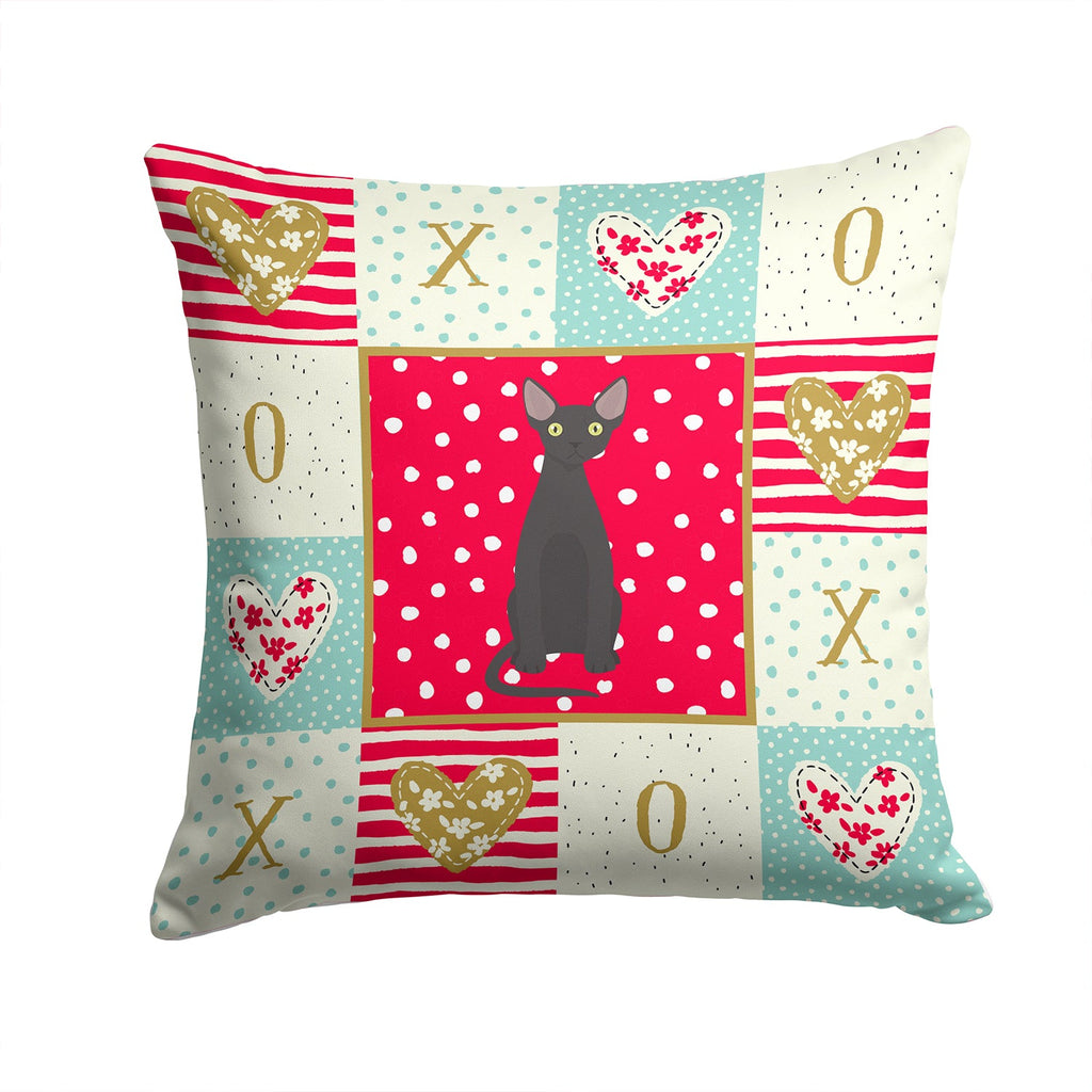 Decorate your space with our Valentine's Day Devon Rex artwork on a Pillow. Add a touch of vibrancy and comfort to your outdoor seating with Caroline's Treasures Fabric Decorative Pillow. Measuring approximately 14 inches by 14 inches, this outdoor pillow is crafted to elevate the appeal of your patio furniture, infusing it with vivid color and artistic flair. The pillow includes a 100% Polyester Fabric sham filled with a quality pillow form to provide superior comfort. Innovatively made from our brand new material, specifically woven for its water resistance, this pillow is designed for durability. The soft canvas fabric offers versatility in use, fit for your indoor couch or your outdoor patio, porch, or veranda. The fabric is dyed with colorfast dyes built for resilience against weather conditions, ensuring the pillow retains its beauty over time. Constructed by sewing three fabric pieces to create a sham, the polyester insert is then nestled inside to form the pillow, resulting in an overstuffed pillow that maintains its shape. Both the sham and the pillow insert are proudly made in the United States. As the pillows are handcrafted, there may be minor variations in size, further enhancing their unique charm. Experience comfort in style with Caroline's Treasures Fabric Decorative Pillow.