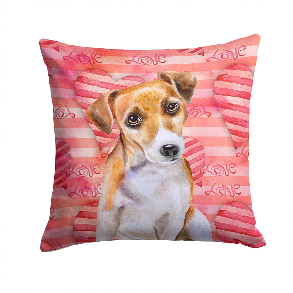 Decorate your space with our Valentine's Day Jack Russell Terrier artwork on a Pillow. Add a touch of vibrancy and comfort to your outdoor seating with Caroline's Treasures Fabric Decorative Pillow. Measuring approximately 14 inches by 14 inches, this outdoor pillow is crafted to elevate the appeal of your patio furniture, infusing it with vivid color and artistic flair. The pillow includes a 100% Polyester Fabric sham filled with a quality pillow form to provide superior comfort. Innovatively made from our brand new material, specifically woven for its water resistance, this pillow is designed for durability. The soft canvas fabric offers versatility in use, fit for your indoor couch or your outdoor patio, porch, or veranda. The fabric is dyed with colorfast dyes built for resilience against weather conditions, ensuring the pillow retains its beauty over time. Constructed by sewing three fabric pieces to create a sham, the polyester insert is then nestled inside to form the pillow, resulting in an overstuffed pillow that maintains its shape. Both the sham and the pillow insert are proudly made in the United States. As the pillows are handcrafted, there may be minor variations in size, further enhancing their unique charm. Experience comfort in style with Caroline's Treasures Fabric Decorative Pillow.