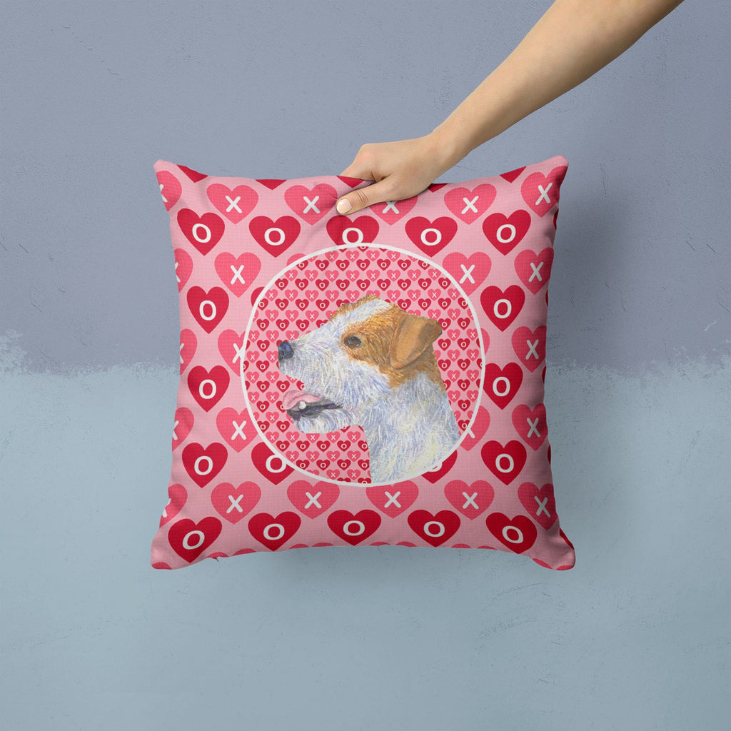 Decorate your space with our Valentine's Day Jack Russell Terrier artwork on a Pillow. Add a touch of vibrancy and comfort to your outdoor seating with Caroline's Treasures Fabric Decorative Pillow. Measuring approximately 14 inches by 14 inches, this outdoor pillow is crafted to elevate the appeal of your patio furniture, infusing it with vivid color and artistic flair. The pillow includes a 100% Polyester Fabric sham filled with a quality pillow form to provide superior comfort. Innovatively made from our brand new material, specifically woven for its water resistance, this pillow is designed for durability. The soft canvas fabric offers versatility in use, fit for your indoor couch or your outdoor patio, porch, or veranda. The fabric is dyed with colorfast dyes built for resilience against weather conditions, ensuring the pillow retains its beauty over time. Constructed by sewing three fabric pieces to create a sham, the polyester insert is then nestled inside to form the pillow, resulting in an overstuffed pillow that maintains its shape. Both the sham and the pillow insert are proudly made in the United States. As the pillows are handcrafted, there may be minor variations in size, further enhancing their unique charm. Experience comfort in style with Caroline's Treasures Fabric Decorative Pillow.
