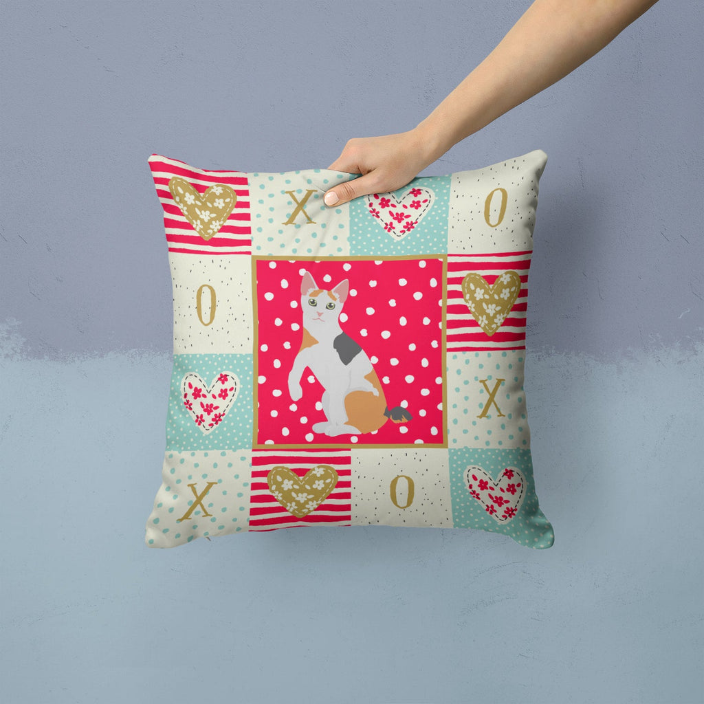 Decorate your space with our Valentine's Day Japanese Bobtail artwork on a Pillow. Add a touch of vibrancy and comfort to your outdoor seating with Caroline's Treasures Fabric Decorative Pillow. Measuring approximately 14 inches by 14 inches, this outdoor pillow is crafted to elevate the appeal of your patio furniture, infusing it with vivid color and artistic flair. The pillow includes a 100% Polyester Fabric sham filled with a quality pillow form to provide superior comfort. Innovatively made from our brand new material, specifically woven for its water resistance, this pillow is designed for durability. The soft canvas fabric offers versatility in use, fit for your indoor couch or your outdoor patio, porch, or veranda. The fabric is dyed with colorfast dyes built for resilience against weather conditions, ensuring the pillow retains its beauty over time. Constructed by sewing three fabric pieces to create a sham, the polyester insert is then nestled inside to form the pillow, resulting in an overstuffed pillow that maintains its shape. Both the sham and the pillow insert are proudly made in the United States. As the pillows are handcrafted, there may be minor variations in size, further enhancing their unique charm. Experience comfort in style with Caroline's Treasures Fabric Decorative Pillow.