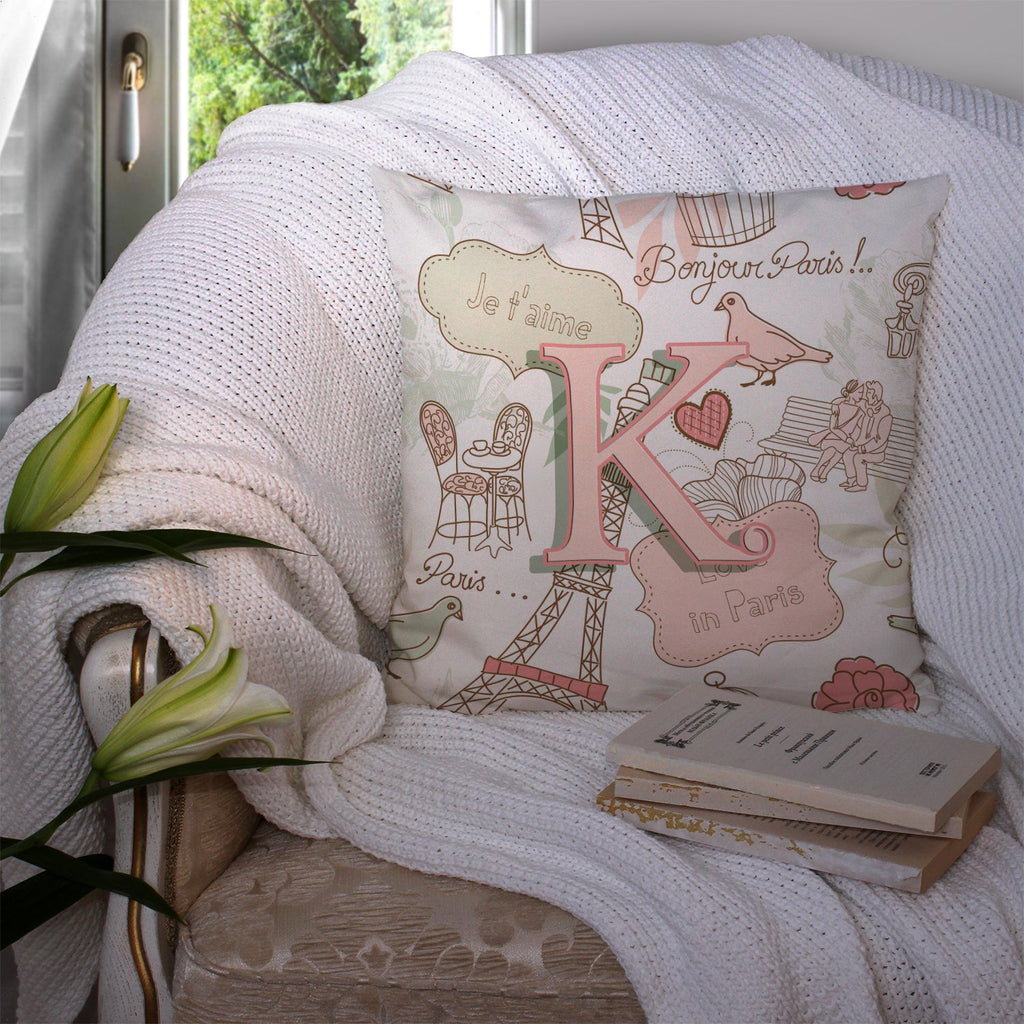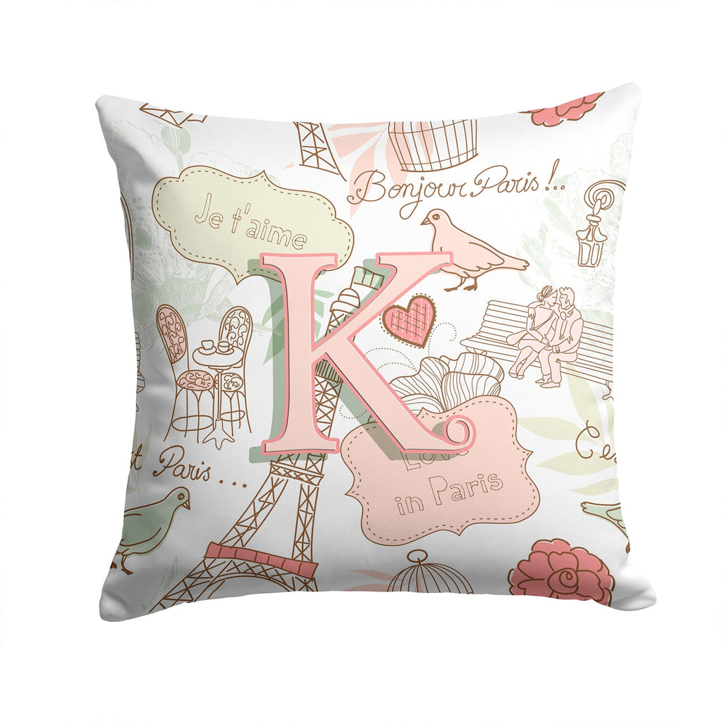 Letter K Love in Paris Pink Canvas Throw Pillow - 14x14 Decorative Pillow – Art for Your Home & Patio CJ2002-KPW1414