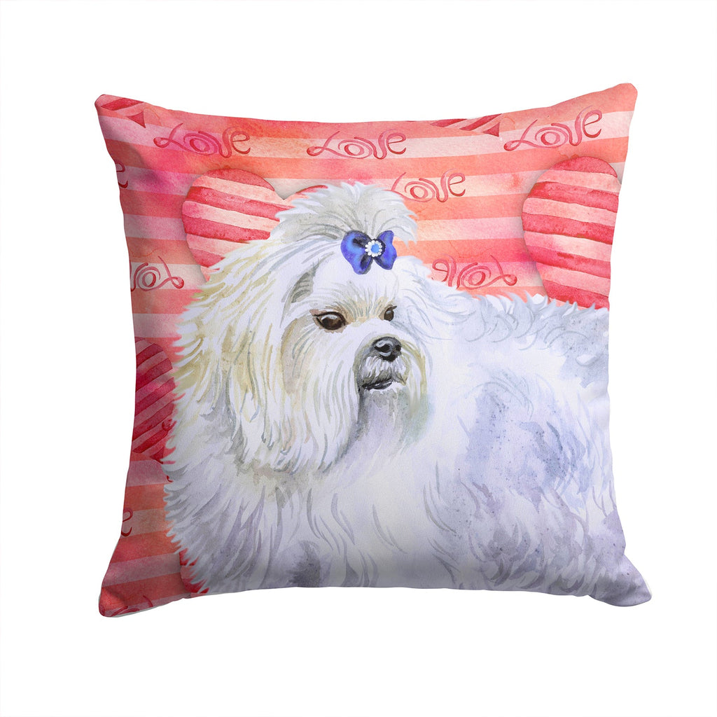Decorate your space with our Valentine's Day Maltese artwork on a Pillow. Add a touch of vibrancy and comfort to your outdoor seating with Caroline's Treasures Fabric Decorative Pillow. Measuring approximately 14 inches by 14 inches, this outdoor pillow is crafted to elevate the appeal of your patio furniture, infusing it with vivid color and artistic flair. The pillow includes a 100% Polyester Fabric sham filled with a quality pillow form to provide superior comfort. Innovatively made from our brand new material, specifically woven for its water resistance, this pillow is designed for durability. The soft canvas fabric offers versatility in use, fit for your indoor couch or your outdoor patio, porch, or veranda. The fabric is dyed with colorfast dyes built for resilience against weather conditions, ensuring the pillow retains its beauty over time. Constructed by sewing three fabric pieces to create a sham, the polyester insert is then nestled inside to form the pillow, resulting in an overstuffed pillow that maintains its shape. Both the sham and the pillow insert are proudly made in the United States. As the pillows are handcrafted, there may be minor variations in size, further enhancing their unique charm. Experience comfort in style with Caroline's Treasures Fabric Decorative Pillow.