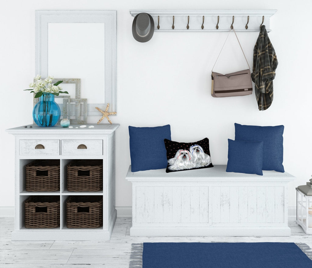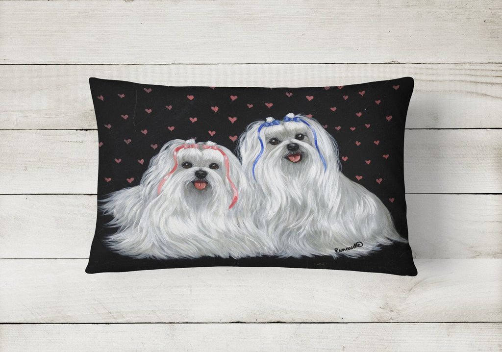 Maltese Sweethearts Canvas Fabric Decorative Pillow PPP3263PW1216