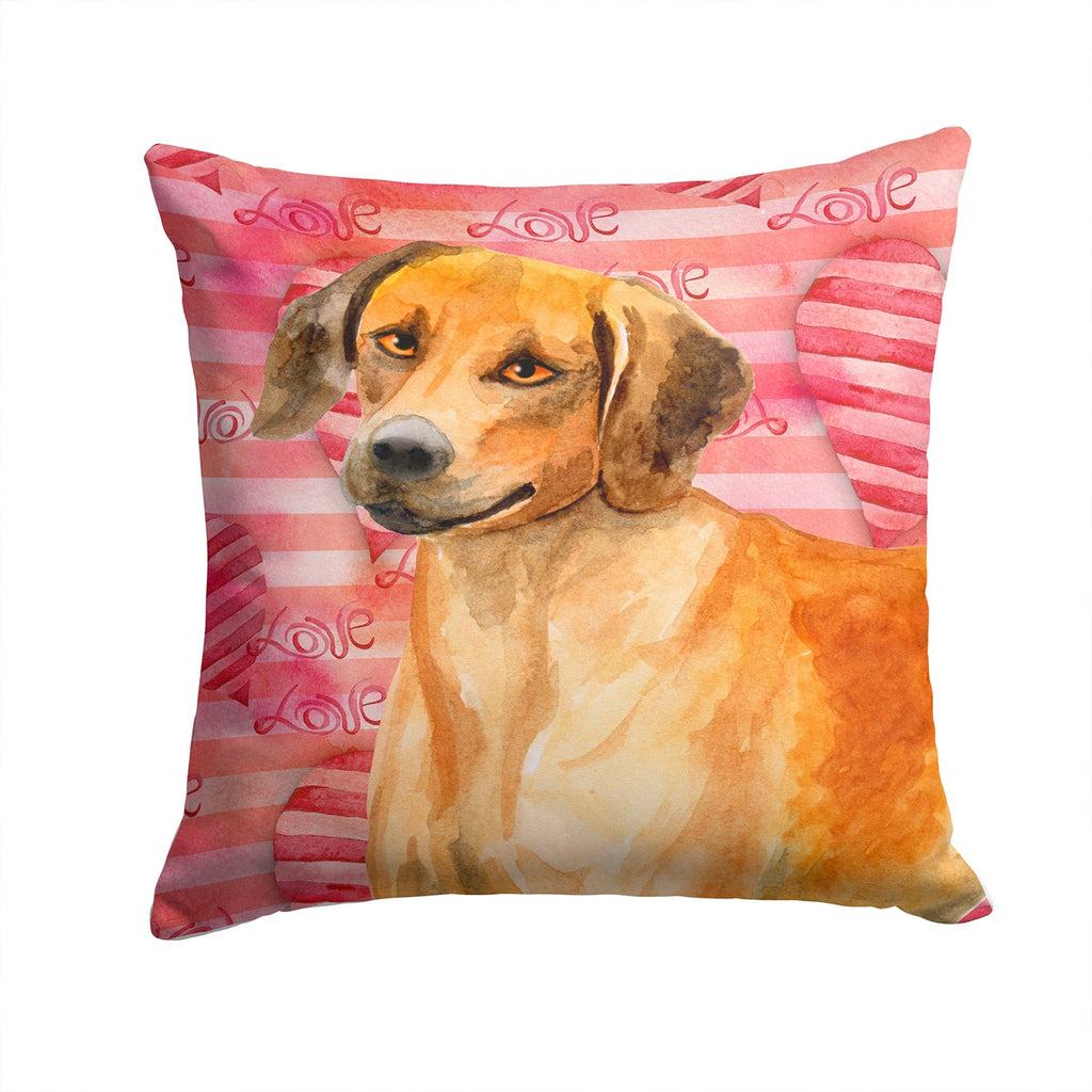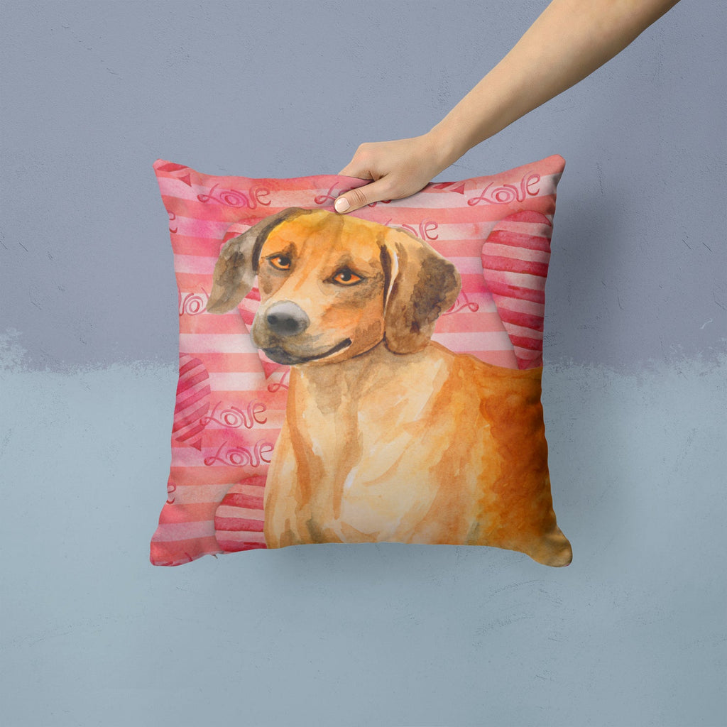 Decorate your space with our Valentine's Day Rhodesian Ridgeback artwork on a Pillow. Add a touch of vibrancy and comfort to your outdoor seating with Caroline's Treasures Fabric Decorative Pillow. Measuring approximately 14 inches by 14 inches, this outdoor pillow is crafted to elevate the appeal of your patio furniture, infusing it with vivid color and artistic flair. The pillow includes a 100% Polyester Fabric sham filled with a quality pillow form to provide superior comfort. Innovatively made from our brand new material, specifically woven for its water resistance, this pillow is designed for durability. The soft canvas fabric offers versatility in use, fit for your indoor couch or your outdoor patio, porch, or veranda. The fabric is dyed with colorfast dyes built for resilience against weather conditions, ensuring the pillow retains its beauty over time. Constructed by sewing three fabric pieces to create a sham, the polyester insert is then nestled inside to form the pillow, resulting in an overstuffed pillow that maintains its shape. Both the sham and the pillow insert are proudly made in the United States. As the pillows are handcrafted, there may be minor variations in size, further enhancing their unique charm. Experience comfort in style with Caroline's Treasures Fabric Decorative Pillow.