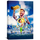 Celebrate Argentina's championship with this stunning canvas wall art featuring Lionel Messi and his team alongside the legendary Diego Maradona. The blue and white colors add a patriotic touch to the scene. This canvas wall art can be hung as is or framed for a more polished look. Perfect for any soccer enthusiast or as a statement piece in your home decor. Honor the champions with this beautiful canvas wall art.