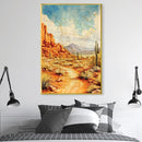 Experience the awe-inspiring beauty of the "Arizona Desert" with this captivating watercolor canvas wall art. The artwork showcases the vibrant colors of the desert landscape, featuring hues of orange, blue, and white. The intricate details and delicate brushstrokes bring to life the rugged terrain and majestic cacti that define the Arizona Desert. With a background effect of a map, this piece adds a touch of adventure and exploration to your space. Whether displayed as wall art, canvas art, or framed art, "Arizona Desert" will transport you to the serene and awe-inspiring beauty of the desert Southwest.