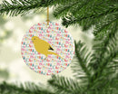 Decorate your space with our Christmas Border Canary artwork on a Ornament. Add a touch of personalized charm to your Christmas tree this holiday season with our Ceramic Ornament. Measuring 2.8125 inches in diameter, this round porcelain ornament beautifully reflects your festive lights, enhancing your holiday decor. The gloss surface sets off the vibrant, full-color artwork contributed by one of our talented artists, bringing a pop of color and joy to your tree. This Ceramic Ornament doesn't stop at being merely decorative. The white back is designed for personalization. Write a heartfelt message, mark a special year, or inscribe a date with a paint pen or a permanent marker to create a treasured memento. Please ensure you allow any personalization to dry thoroughly before handling to maintain the pristine finish. Included with the ornament is a delicate gold cord for easy hanging. Made in the USA, this Ceramic Ornament makes an exceptional gift for a pet sitter, teacher, family member, or anyone you wish to share a little Christmas magic with. With its blend of style, charm, and personal touch, it's a meaningful addition to any Christmas tree.