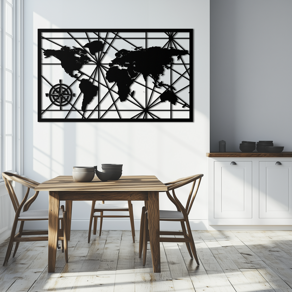 Enhance your space with this stunning Geometric World Map Metal Wall Art, a modern and sleek steel décor piece that blends contemporary aesthetics with wanderlust spirit. Designed with precision-cut continents and geometric lines, this wall art is crafted from 1.5 mm premium steel, ensuring long-lasting durability and a lightweight feel. The electrostatic powder coating offers rust and fade resistance, making it suitable for both indoor and covered outdoor spaces.