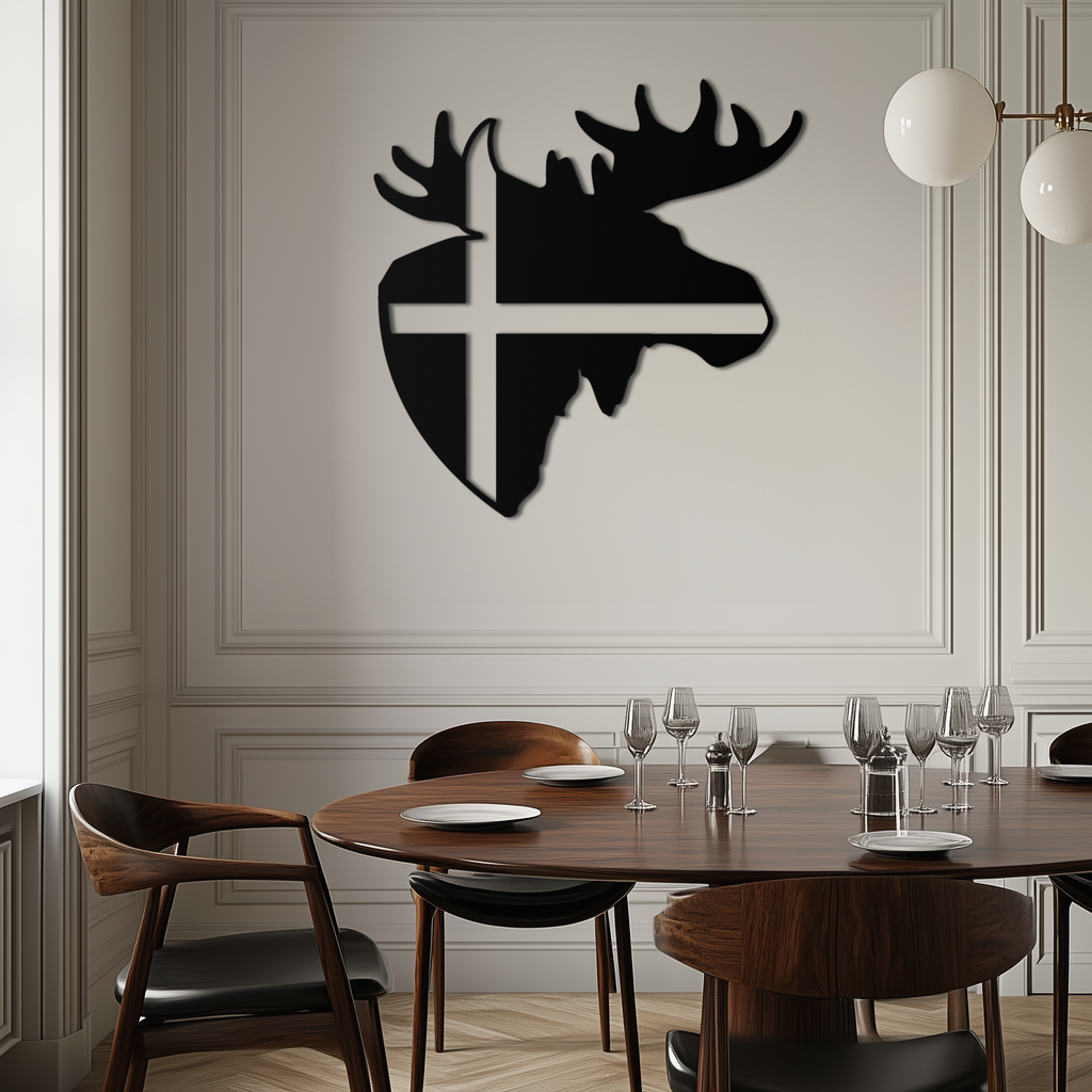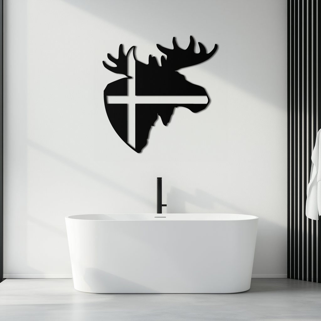 Add a touch of Nordic charm to your living space with our Nordic Moose Silhouette Metal Wall Art. This striking design features a majestic elk silhouette gracefully accented with a Scandinavian cross, symbolizing strength, nature, and heritage, perfect for rustic, modern, or minimalist interiors.
