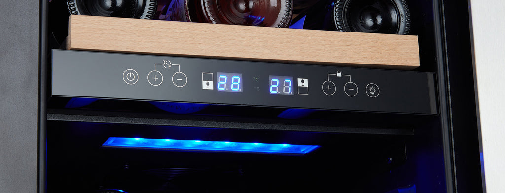 • Dual Zone/One-Touch Control: Featuring a space for large bottles, such as Champagne.The upper zone ranges from 41°F to 54°F while the lower zone is between 54°F to 68°F.Providing perfect chilling temperature all the time! Unique design make this small wine cooler could be installed as built-in wine cooler or freestanding one. This mini wine cooler could hold the drink you like too. You would not just enjoy your wine, could enjoy your drink too.