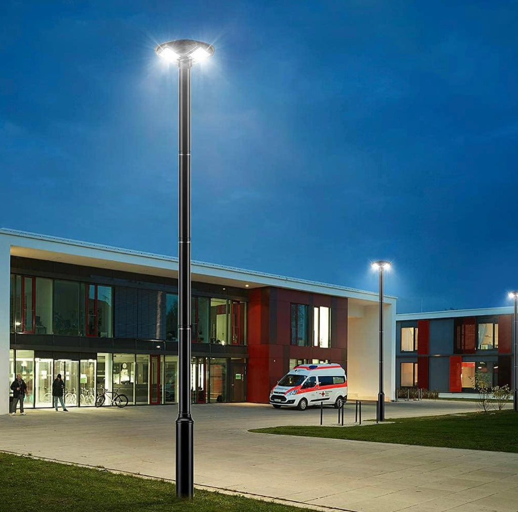 3500W Commercial Solar Round 360° Wide Angle Pole Outdoor Lamp Post Light with 98 inch Pole IP67 Waterproof With Remote