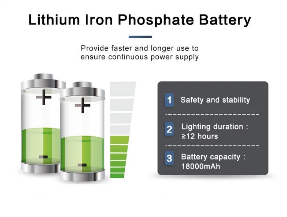 - Come with a wide solar panel and 20000 MAH rechargeable LiFePO4 battery. I like this combination since it boasts a high conversion rate and thus, a faster charging time and longer working use.