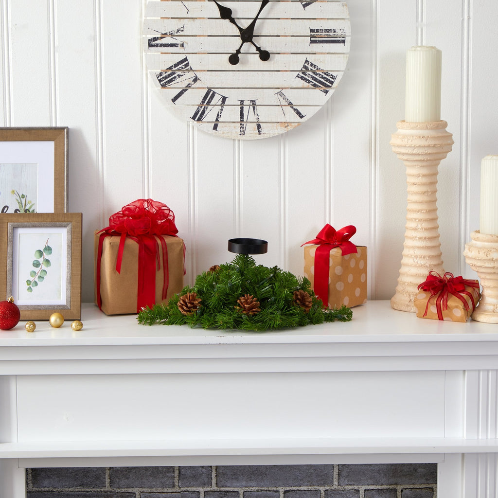 Set your home aglow this holiday season with the help of this artificial candelabrum; specifically designed as an elaborate candle holder, it’s intricately designed from a rich overgrowth of realistic looking pine greenery, handsomely accented with miniature faux pinecones, all carefully surrounding a trio of candle holders. Better yet, this seasonal centerpiece comes already pre-strung with 35 lights, eliminating pre-tangled messes and holiday stress. Reaching 16” long, this winter-ready decorative accent would make an enchanting addition to a mantle or a holiday-inspired tablescape.