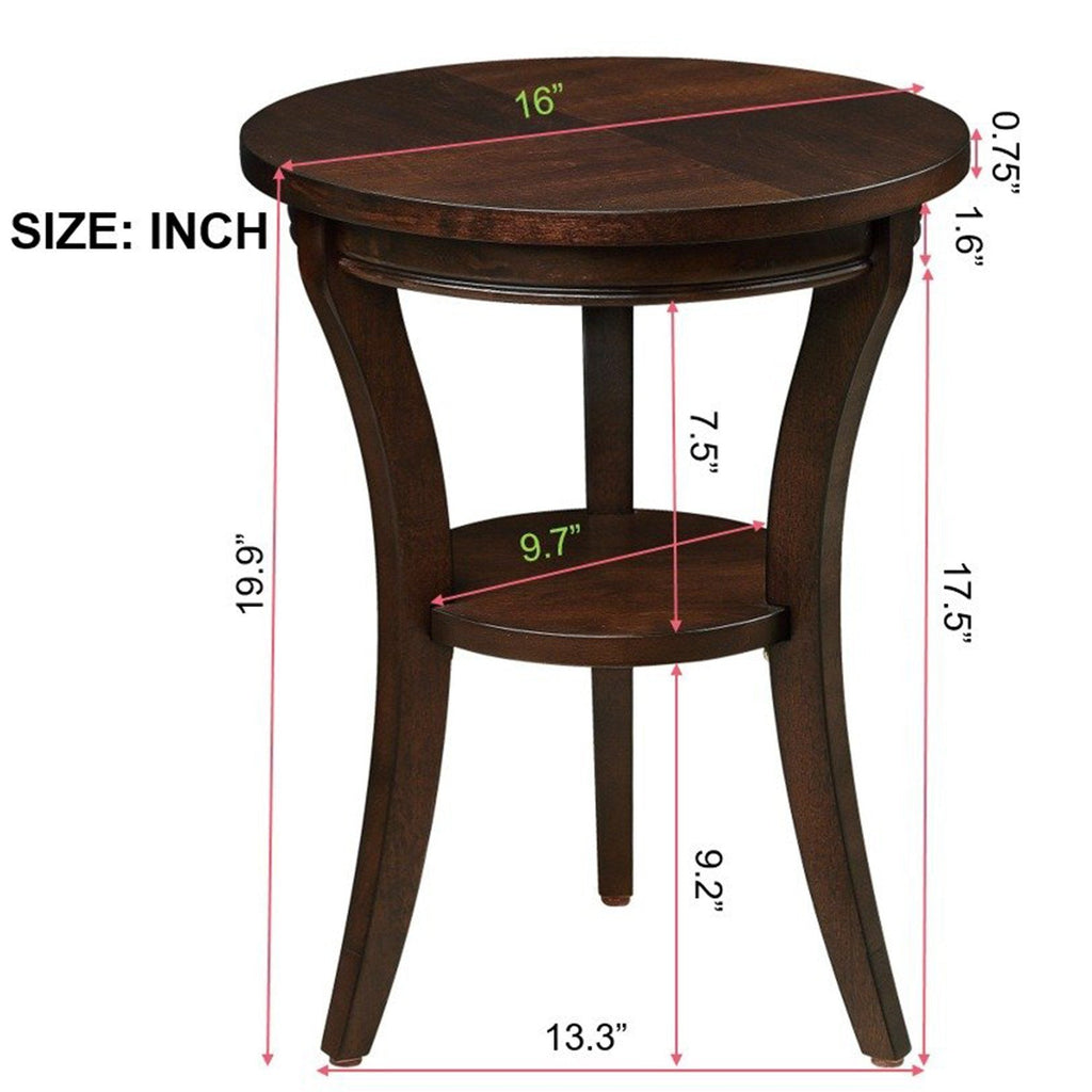 16" Wood Round End Table, Side Table w/Open Shelf, Small Sofa Side Table for Small Space, Multipurpose Accent Table for Bedroom Living Room Home Nightstand (Espresso)