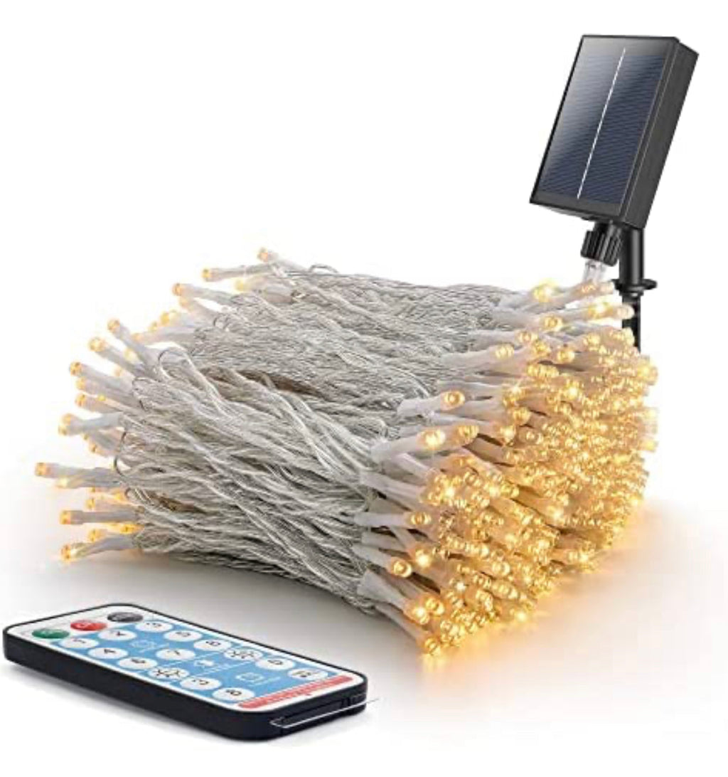 Mimigogo 500LED 165ft Solar String Lights with Remote Control, 8 Lighting Modes, Time Function, Warm Your Heart and Enrich Your Home Life.