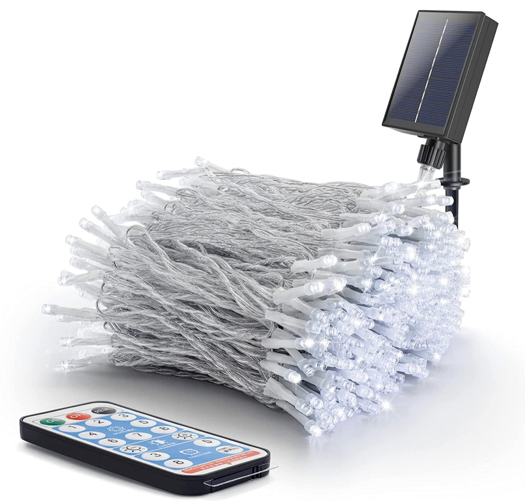 165Ft Solar String Lights White Wire Outdoor,500 LED Christmas Lights with 8 Modes and Timer, Remote Control