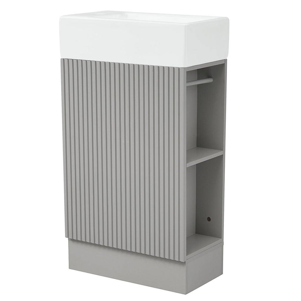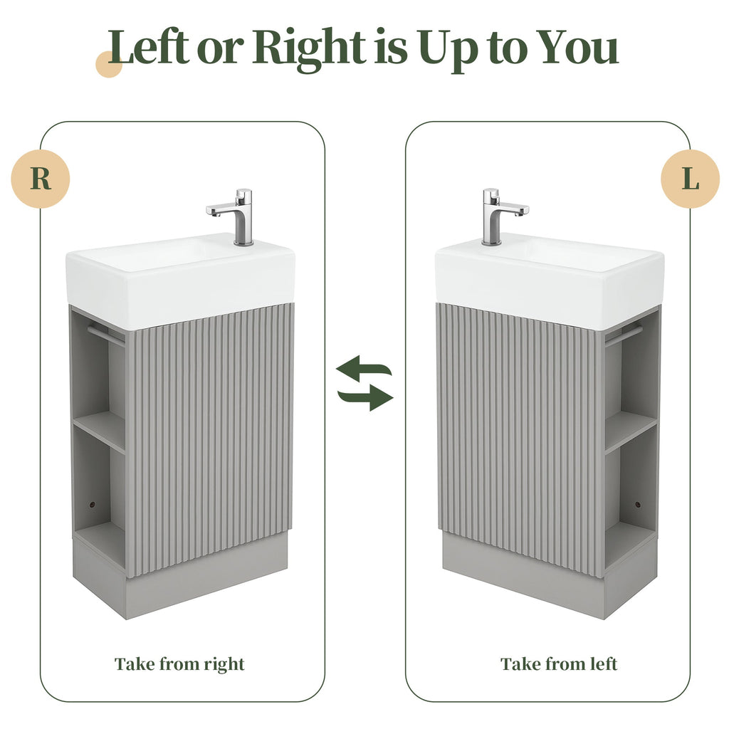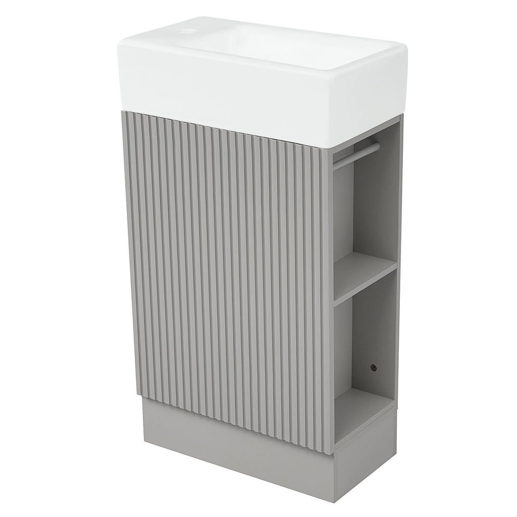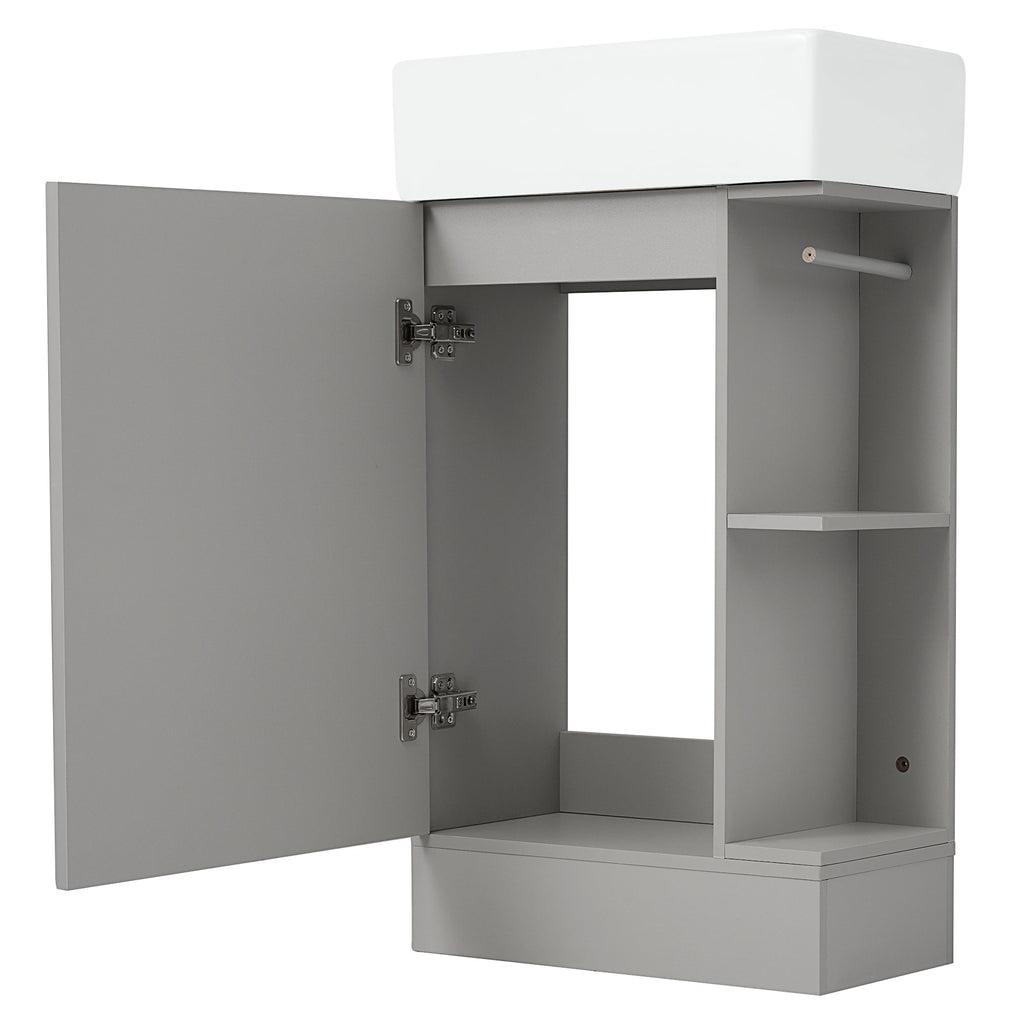 18.6" Bathroom Vanity with Sink, Bathroom Vanity Cabinet with Two-tier Shelf, Left or Right Orientation, Grey