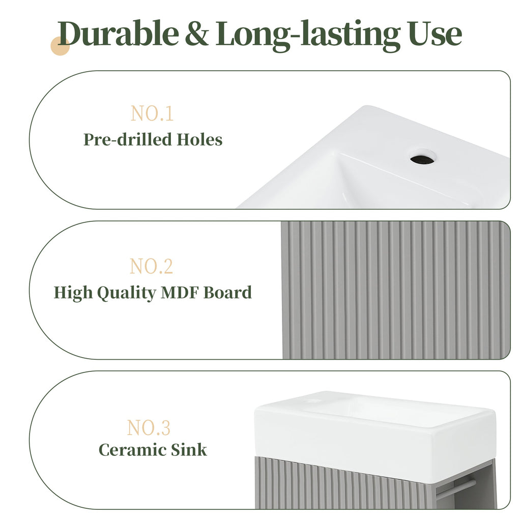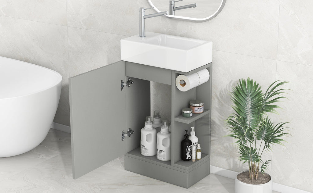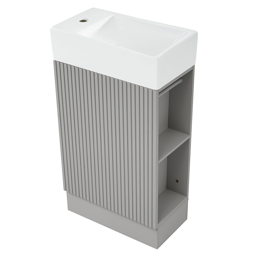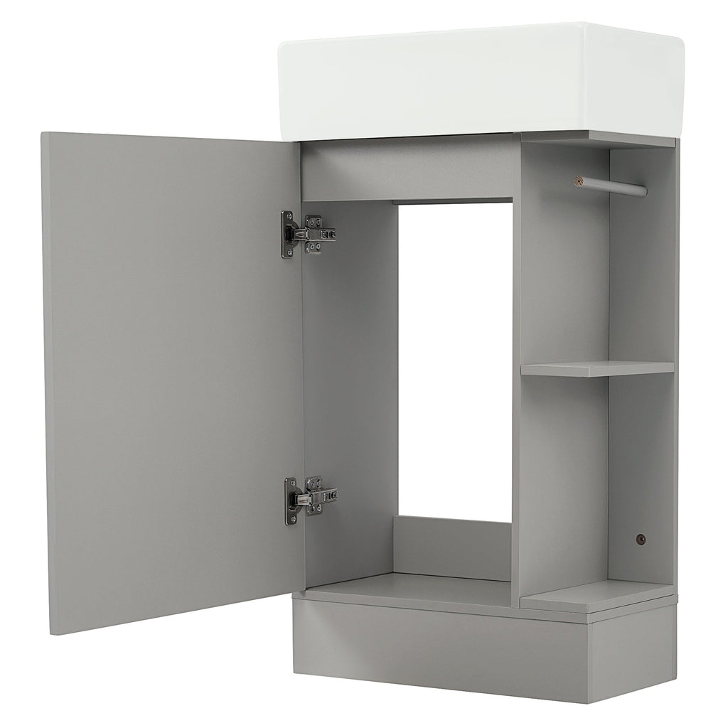 18.6" Bathroom Vanity with Sink, Bathroom Vanity Cabinet with Two-tier Shelf, Left or Right Orientation, Grey