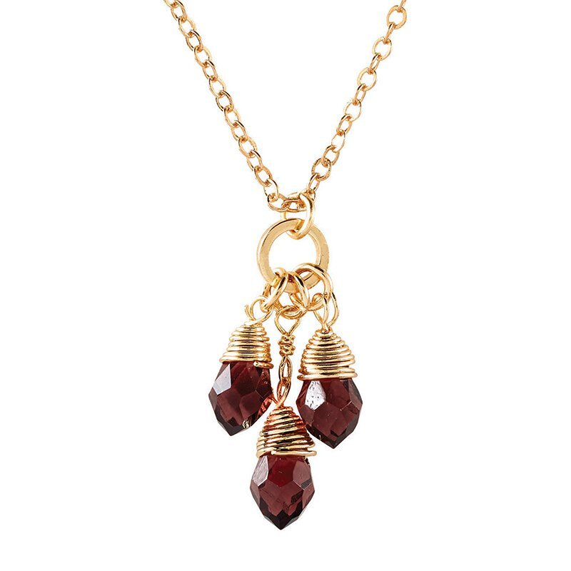 - Hand wrapped beads and cut glass crystal gem stones adorn a gold chain