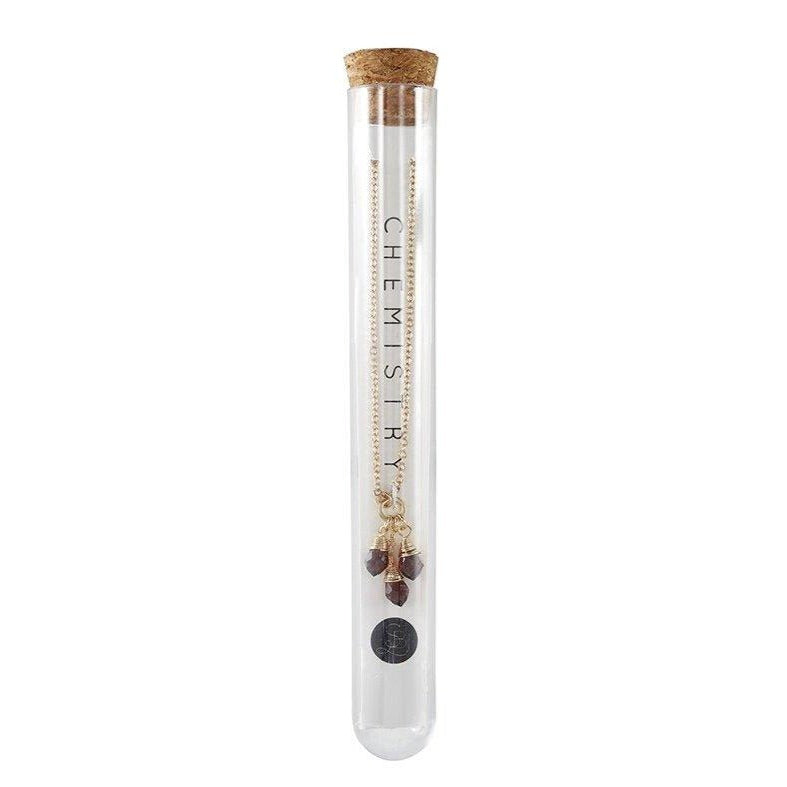 This giftable necklace comes in a cute test tube with cork topper and celebrates the beauty of metals and gems.