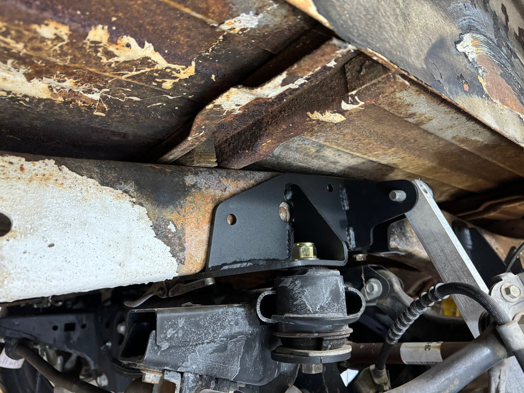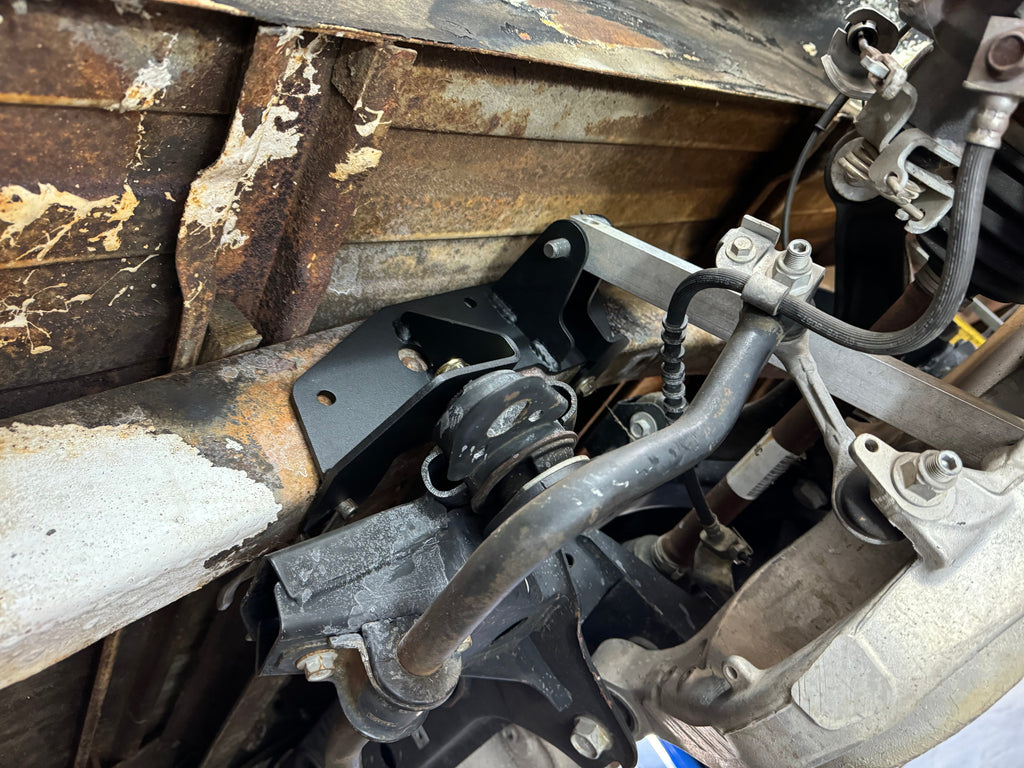 Install this kit by first removing the old suspension, including the leaf spring hangers. Then bolt in the front brackets using 2 of the leaf spring hanger bolt holes. Install the rear brackets to the s-550 and 2024+ S-650 subframe and clamp them tight against the bottom and side of the frame rails. Drill and install bolts to hold it in place, then remove the subframe to allow you to finish drilling and bolting the brackets in.