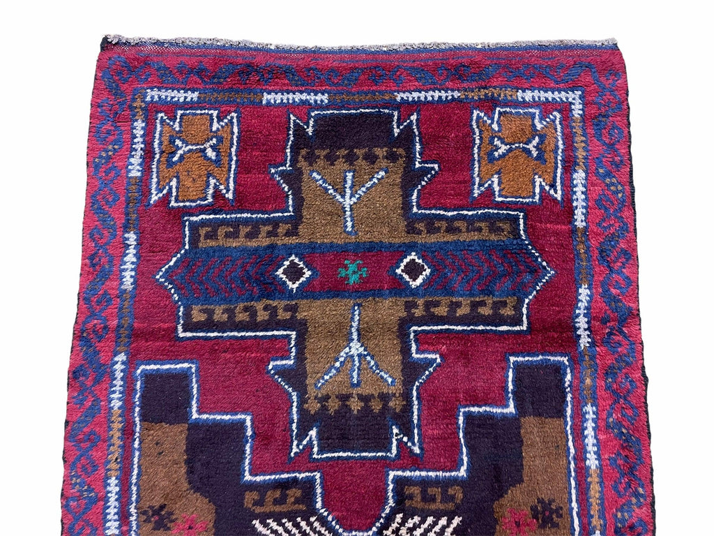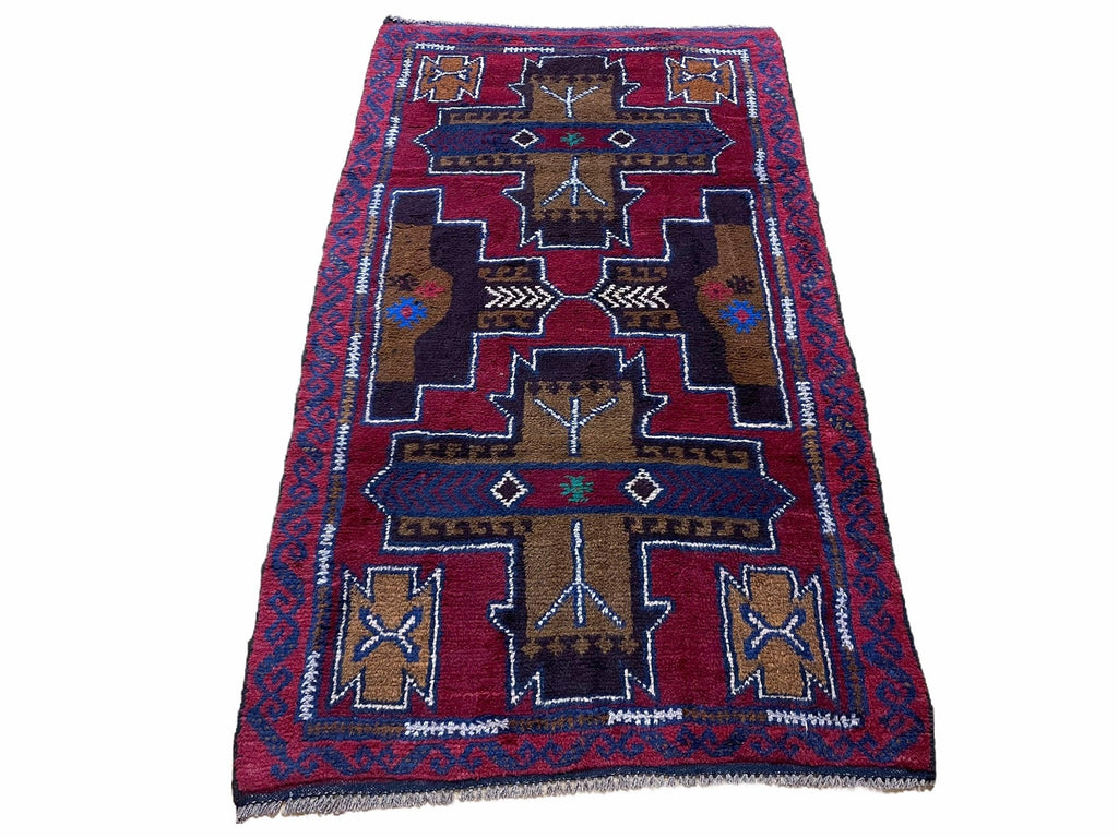 2' 10" X 4' 9" Vintage Handmade Tribal Wool Rug Balouchi Rug Afghan Rug Red Blue