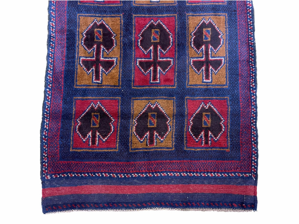 2' 9" X 4' 5" Vintage Handmade Tribal Wool Rug Balouchi Afghan Rug Blue Red 3x5