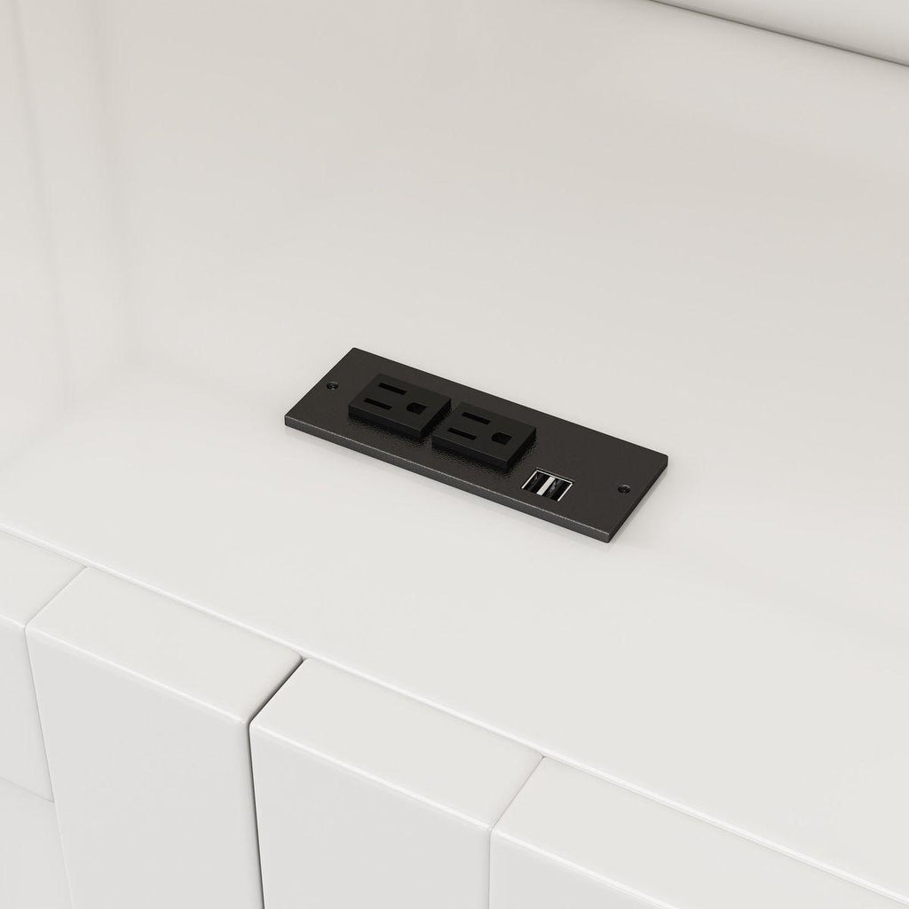 - The open storage area includes built-in USB Ports to accommodate electronics like an alarm clock or phone charging station.