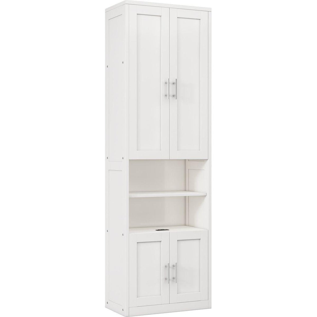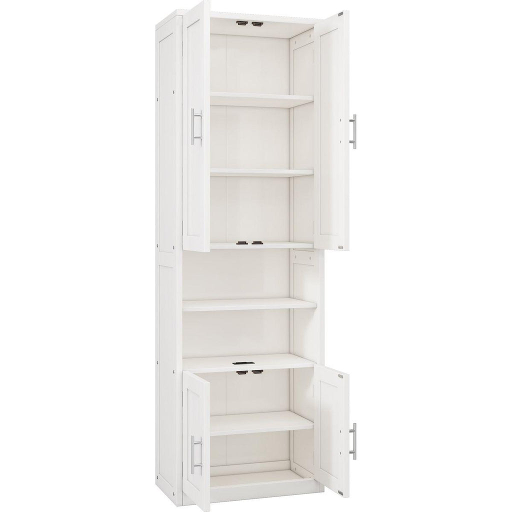 - Three adjustable shelves give the tall cabinet with doors the flexibility to organize items of various shapes and sizes.