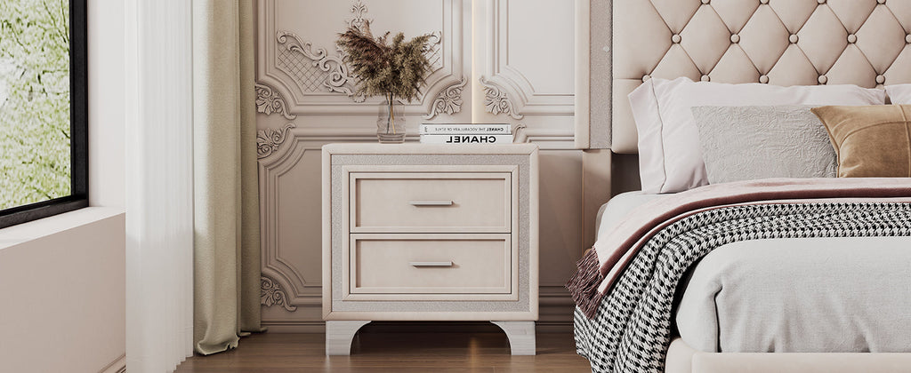 - Timeless Design: Bring the rustic charm of velvet into your bedroom with this bedside table. The clean lines of the nightstand create a calming atmosphere. Whether you prefer classic, vintage or modern designs, this upholstered nightstands will match your style.