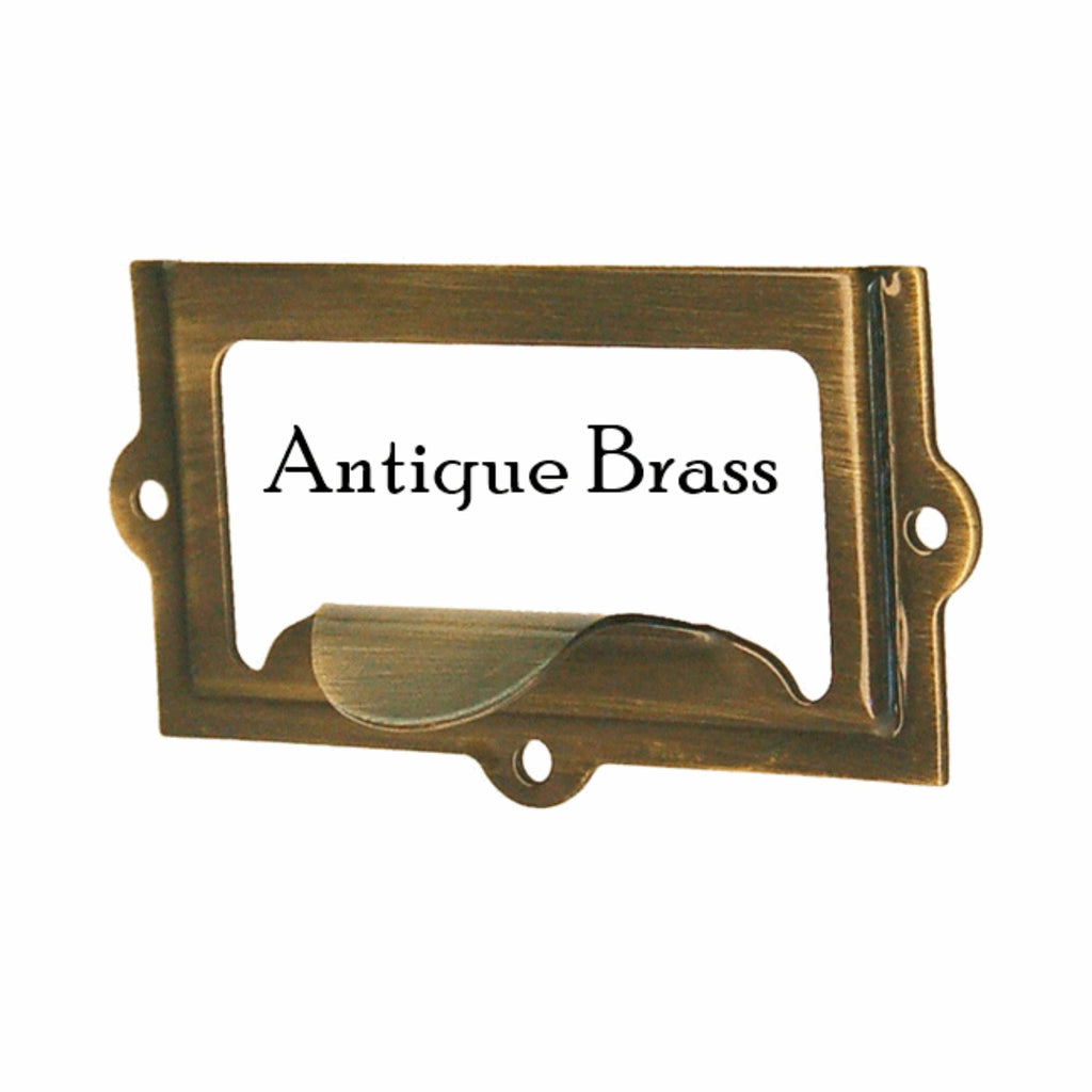 Add a touch of vintage functionality to your furniture with this stamped brass Filing Cabinet Card Holder with Pull. Perfect for filing cabinets, drawers, or storage boxes, it combines classic design with practical durability.