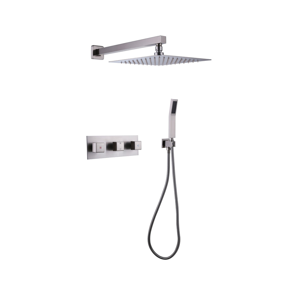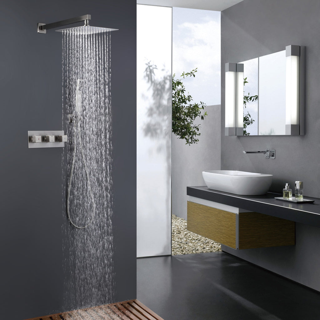 1. Trustmade shower system features a 10" by 10" oversized spray area with a nozzles rainfall showerhead, full covering your body, feels like the whole sky is raining down on you.