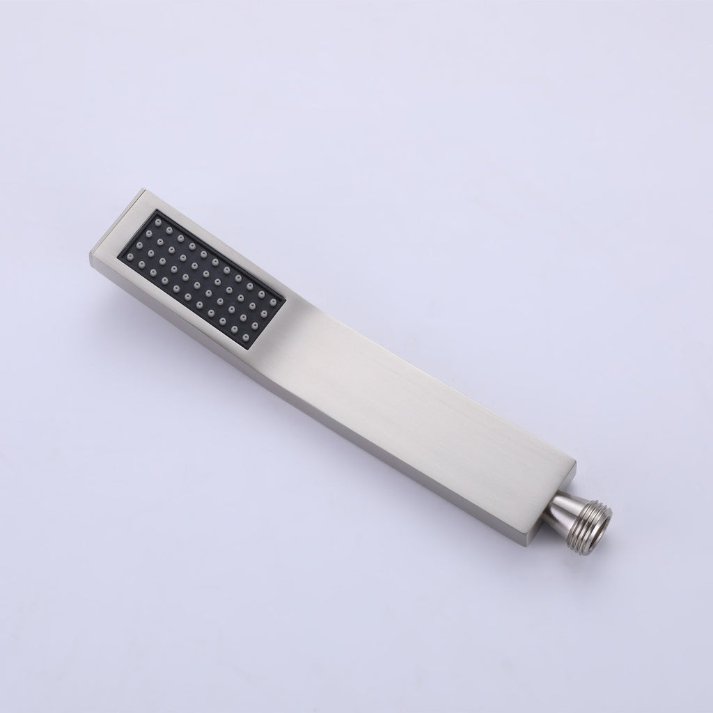4. This brushed nickel shower faucet, square hand shower, unique design, high standard brushed nickel finished on the surface, scratch-resistant, corrosion-resistant, and easy to clean.
