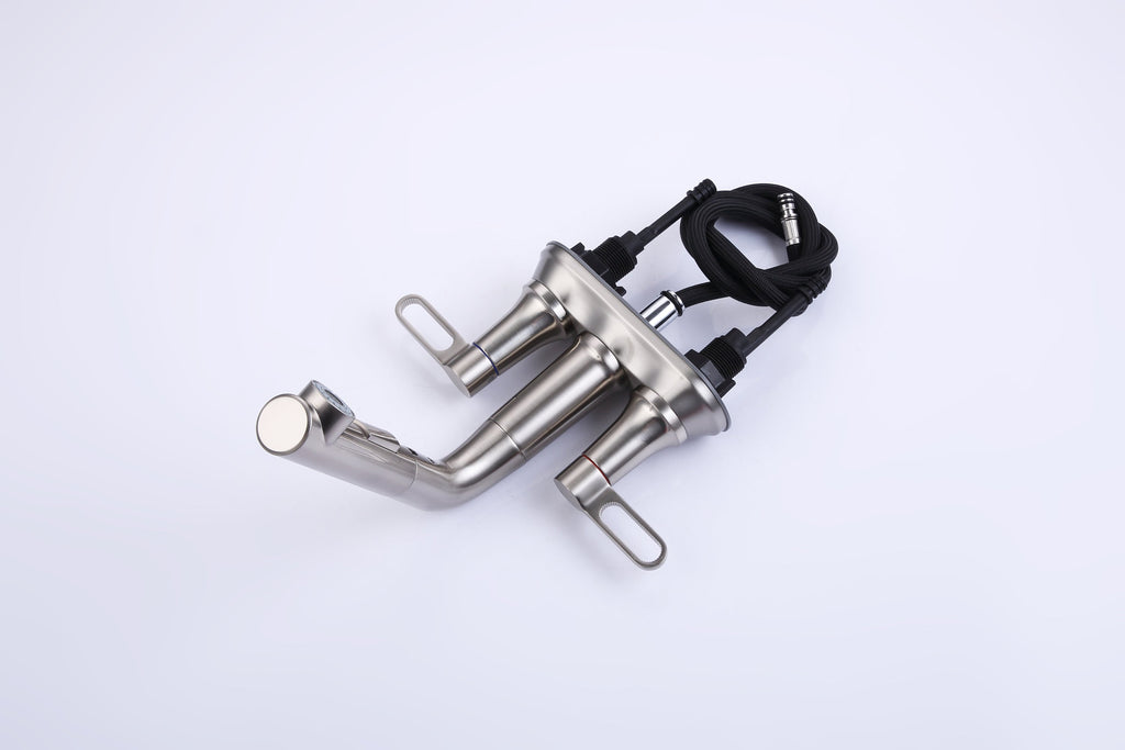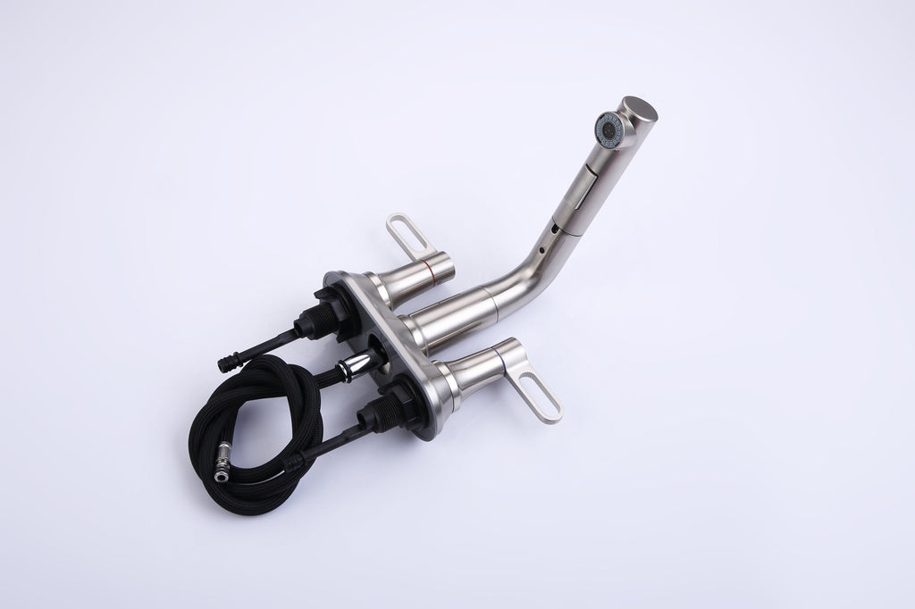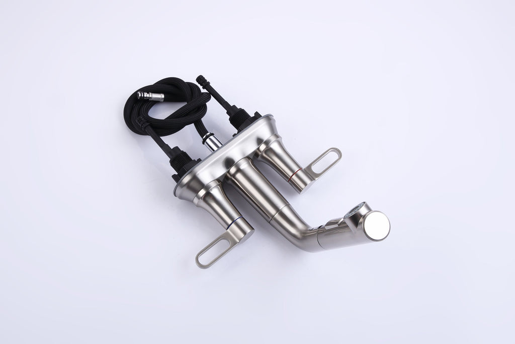 • √【Practical Pull-out Sprayer】: This 3 hole bathroom faucet has a retractable hose, which can make your daily cleaning work more flexible. It is not only convenient for you to wash your hair in the wash basin, but also can be used to fill the bucket.