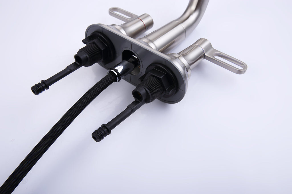 • √【Easy Installation】:4-inch centerset and 3-hole installation design make installation easy. It is suitable for 1/2 inch or 3/8 inch water supply connection. If you connect it to 1/2 inch water supply, please use 3/8" to 1/2" adapter.