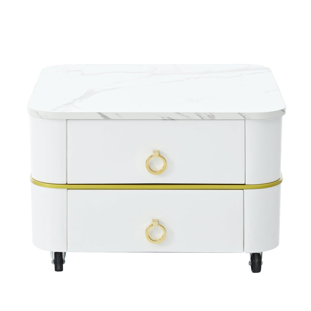 The wheel design on the bottom of the end table makes it convenient and can be easily moved to the desired location, providing greater flexibility for home layout. And with two brake wheels, this coffee table is able to be hold firmly in place by locking the brakes, without worrying it will wobble or slide due to movement.