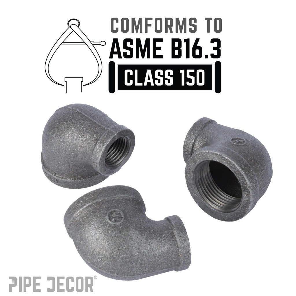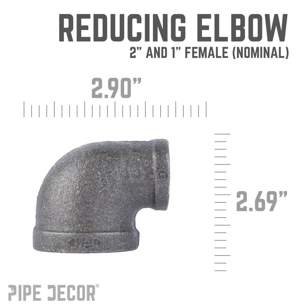 Having trouble connecting two pipes of different diameters? You need a reducing elbow. Fit that bigger or smaller pipe into your next pipe project. Create a unique visual effect by using two different pipe sizes in you DIY projects. Our fittings are made with durable, industrial-grade malleable iron. Fittings are 100% authentic and are made to stand the test of time. You will know PIPE DECOR parts and accessories when you hold them. Beauty and beast. Strength and style. These are real industrial fittings for your decorations and designs. Accept no substitutes. Extra pieces and accessories are available for your custom projects and expansions. Plug and play as desired.